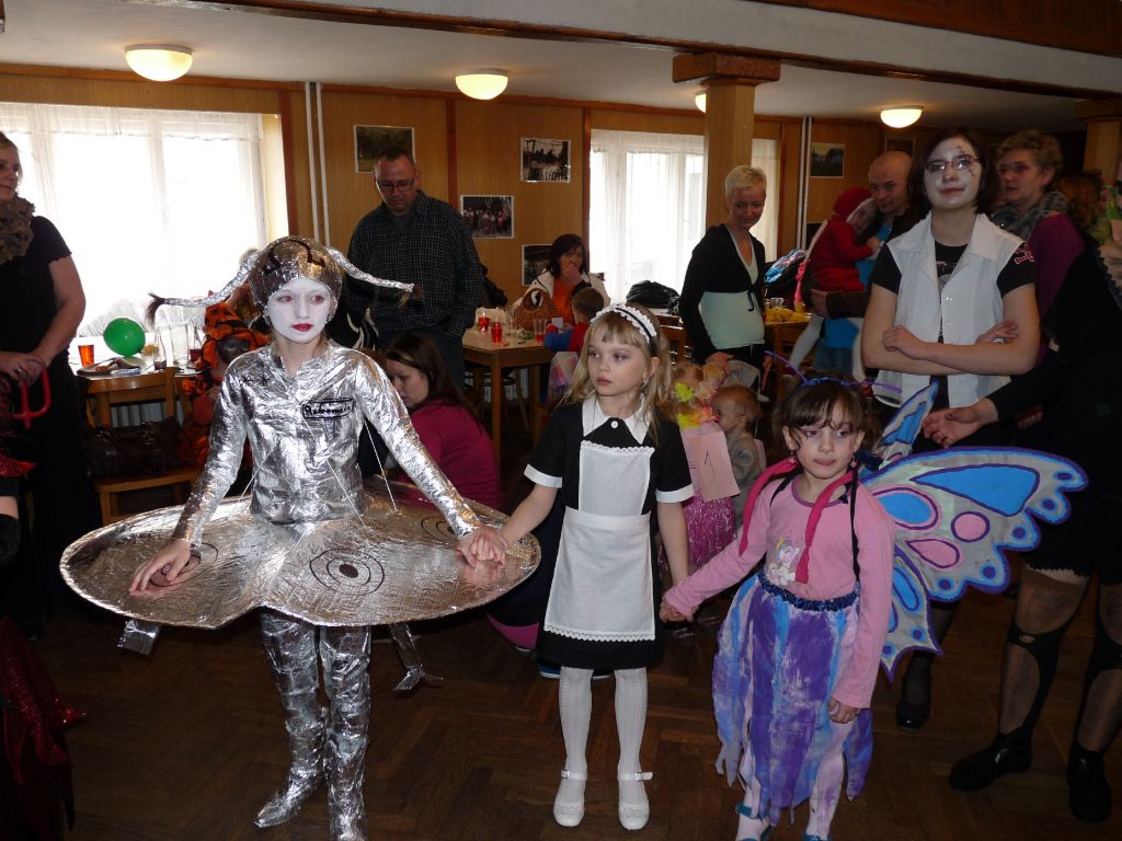 Můžu říci, že si rodiče dali velkou práci, aby vytvořili takové kreativní a nevšední masky pro svá dítka. Na parketu se objevily masky v podobě hroznového vína, E.T. mimozemšťanů, pirátů, karkulek, Kinder vajíčka, princezen nebo nevěst. Velký úspěch měli Hurvínek s Máničkou. Letos nám převládala parta Spidermanů, kominíčků, čertíků, berušek a motýlků. Všechny masky byly nádherné.