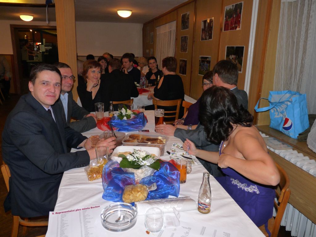 Jako každý rok byl sál Kulturního domu v Bochově vyzdoben v barvách města. Myslím, že se to opět výzdoba líbila. Snažíme se každý rok vymyslet něco jiného. Tentokrát pro hosty plesu čekalo překvapení v podobě vystavených fotografií na téma - co jsme v roce 2012 v městečku udělali, a co se také událo. A tak se zde objevily fotky opravy hradu Hartenštejn – Karlovarské věže i opěrné zdi v Karlovarské ulici v Bochově. Nechyběly ani fotky SDH Bochov, fotbalistů FK SMB Bochov a z různých akcí pořádaných Kulturní komisí.