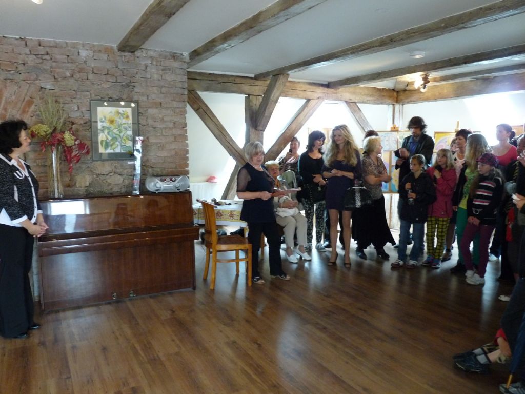 Výstava byla slavnostně ukončena 29.6.2013 indickým ženským tancem, které nám předvedly p. Procházková, p. Klarisová a p. Oršulová z tanečních skupin - Salome a chebské skupiny Triable Cheb. Poté zde byly přečteny básně spisovatelky p. Kostenbergerové. Podíl na vytvoření výstavy měly : p. Vildová, p. Šedivková, p. Toušová a p. M. Houžvičková. Návštěvníci si mohli některé výrobky zakoupit nebo objednat. Výstava se všem velice líbila.