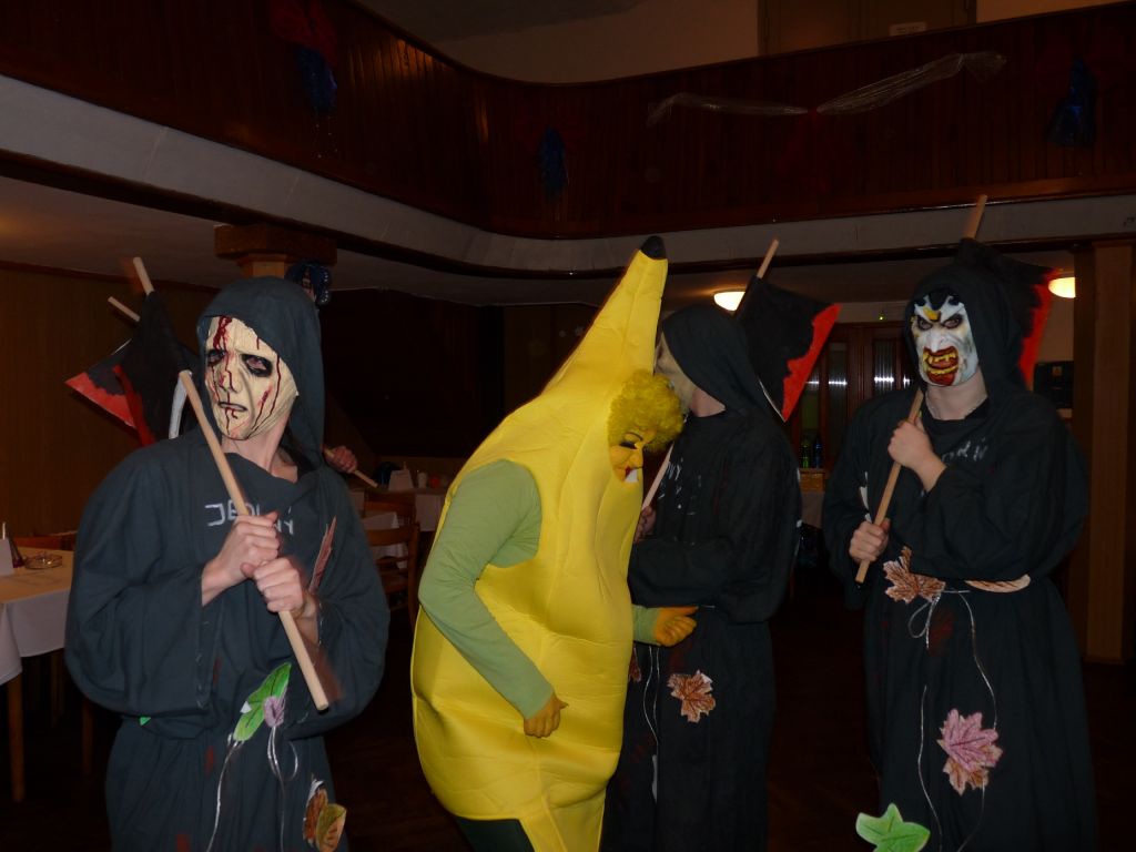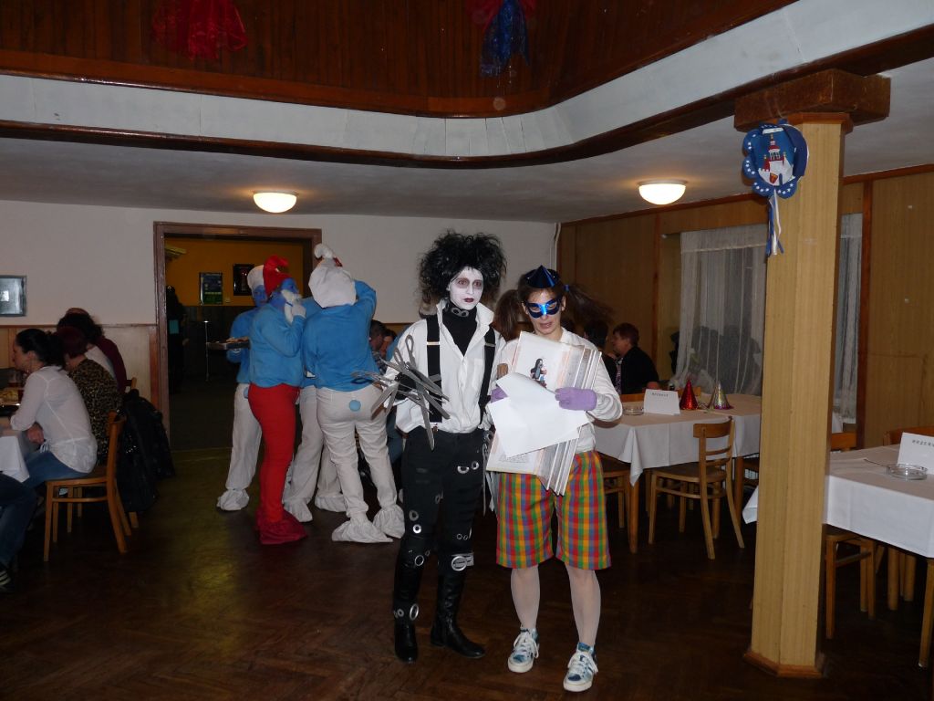 Sešla se velká sorta různorodých masek. Ve skupinách to byli například španělé, šmoulové, kokosy na sněhu, mouchy, včely a spousty dalších. Dokonce nás navštívil sám pan prezident Zeman s chotí a svojí hradní stráží. Ti nakonec na celé čáře zvítězili. Pod maskou se skrýval Petr Brabenec se svojí družinou. V jednotlivcích měli největší úspěch střihoruký Edvard, banán, policistka, ale i čarodějnice, kovboj atd.