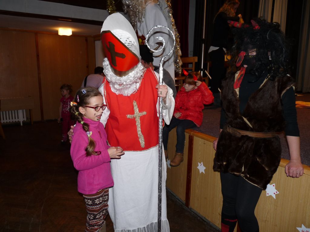 Nakonec opravdu dorazil Mikuláš, Anděl a hrůzostrašní čerti, kteří, více jak 70 dětí, za odevzdané kartičky s razítky ze stanovišť, odměnili Mikulášskou nadílkou.