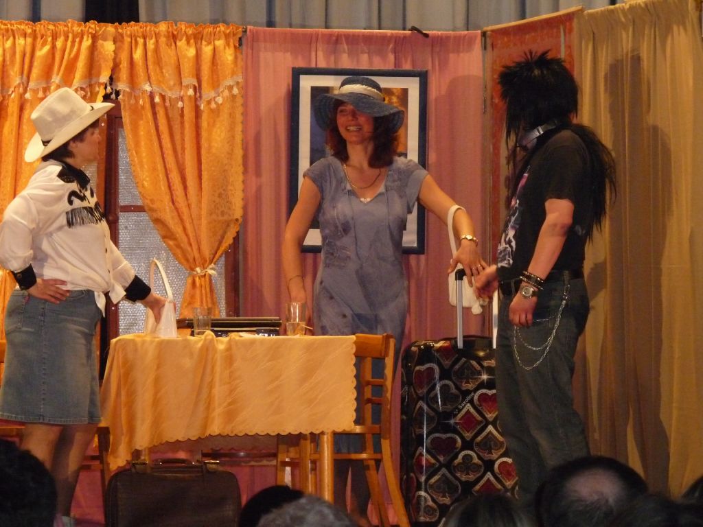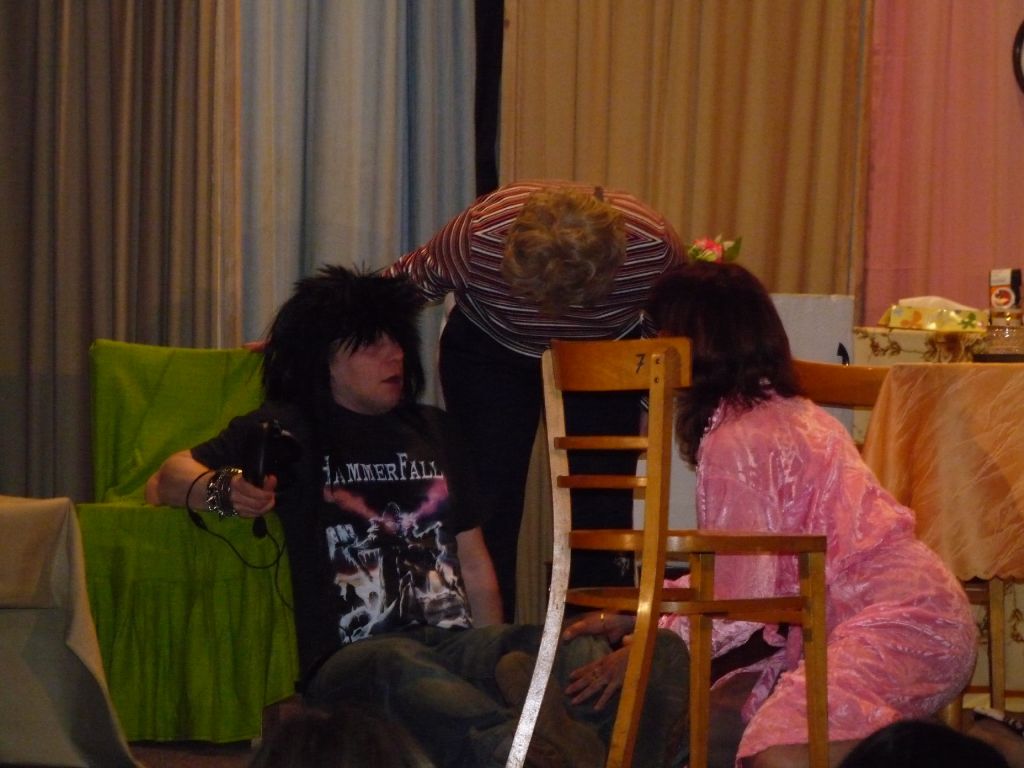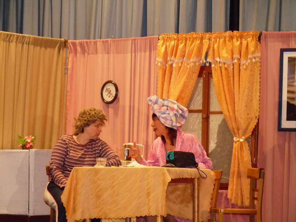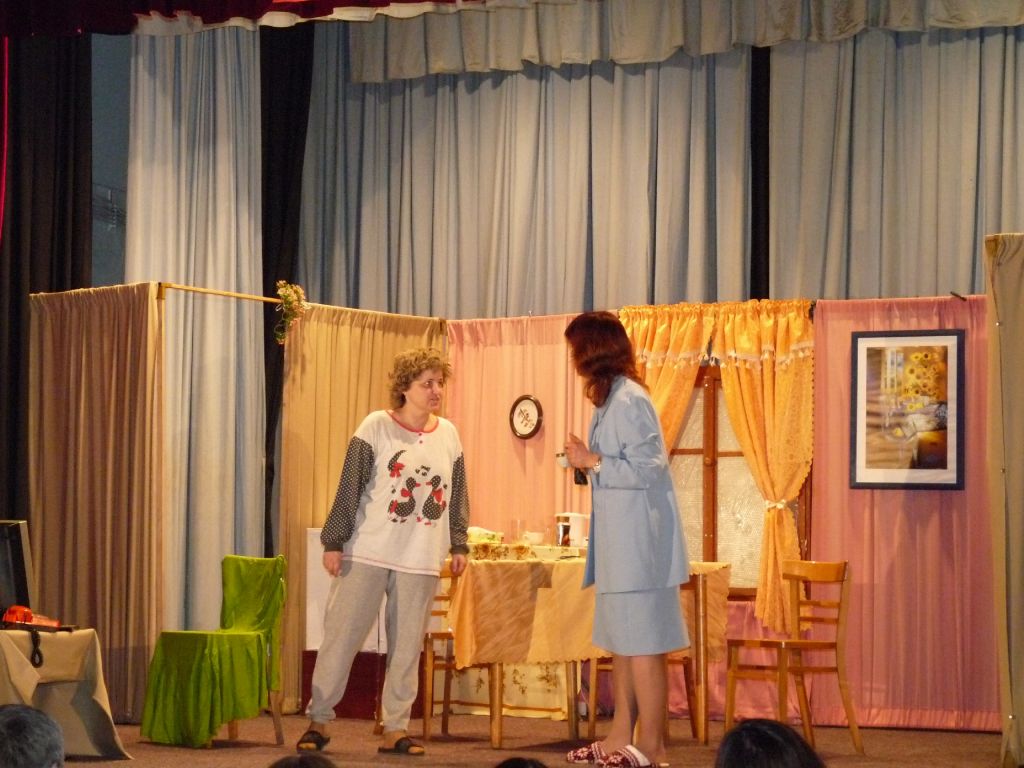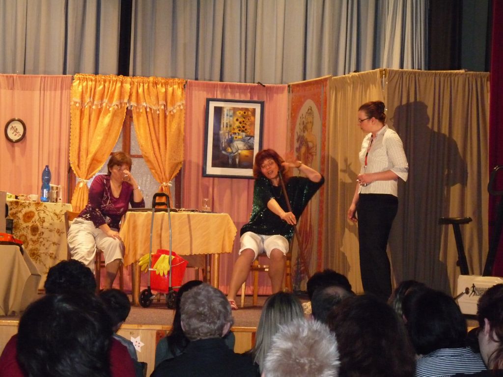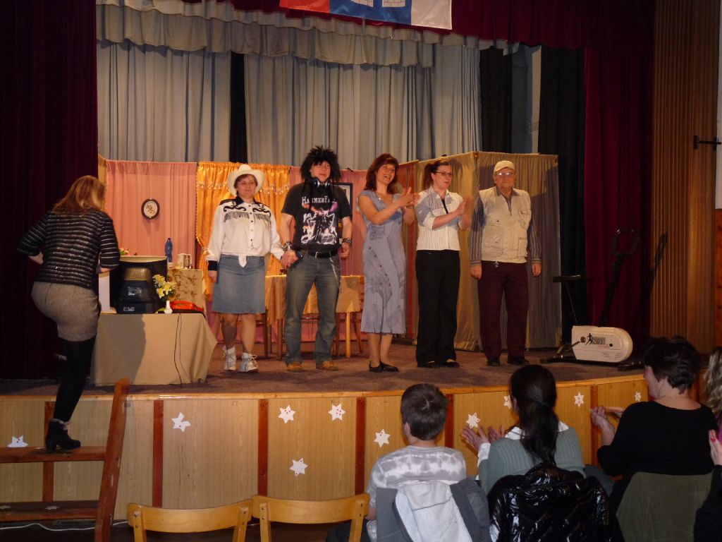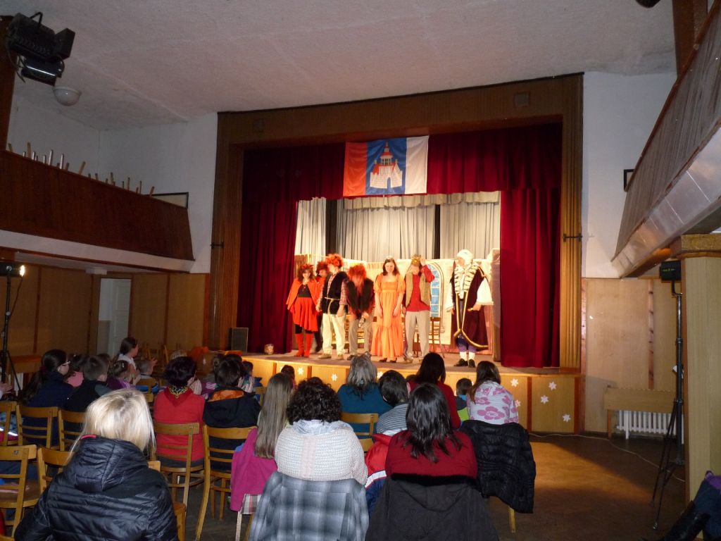 Od 19:30 hod po té čekala dospělé diváky česká konverzační komedie s detektivní zápletkou ,,Rocker a dvě staré dámy". Měli jsme možnost se přenést do luxusního penzionu pro seniory, kde jsme se seznámili se Zitou, která od života už nic nečeká a s její čerstvou spolubydlící Agnes, čipernou dámu v letech s hereckými ambicemi. Penzion vede Kamila, podezřele milá slečna a nemůže chybět ani mladý rocker Robert, který dámám teprve ukázal, jak chutná život. Společně jsme si užili hořkou komedii o životě sladkém i krutě realistickém. Obě představení se divákům moc líbila, zejména na dětském představení byla účast a hojná a již nyní se těšíme na další podobné akce.