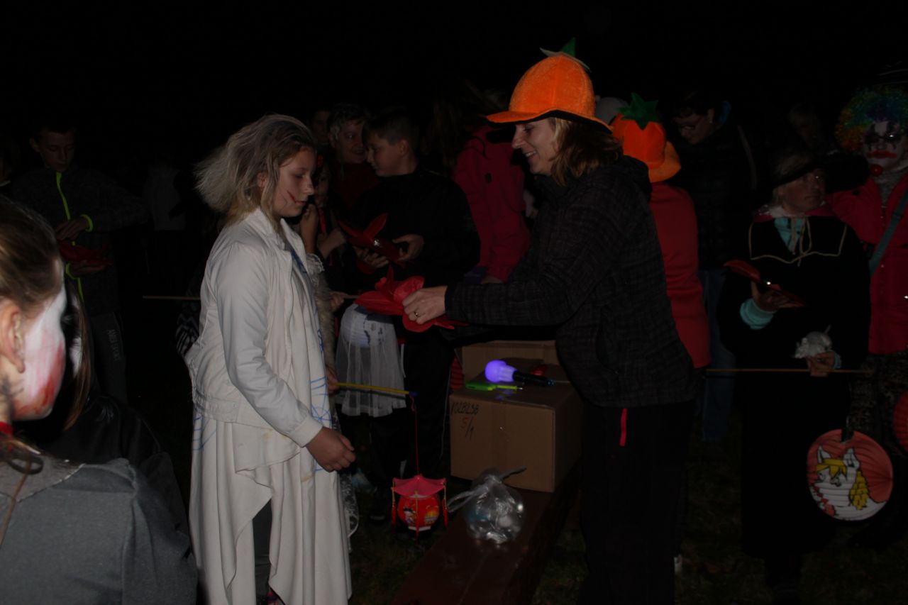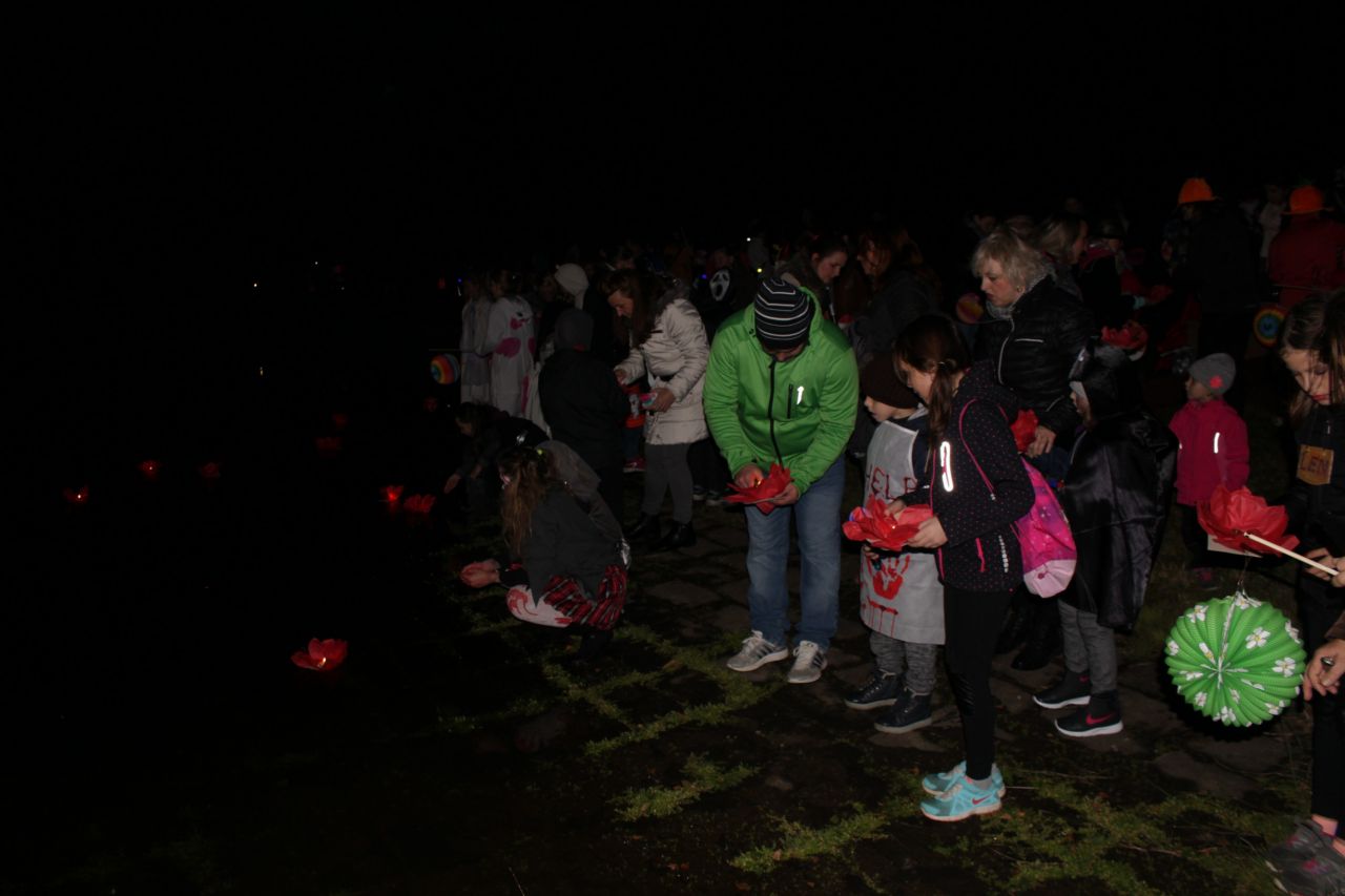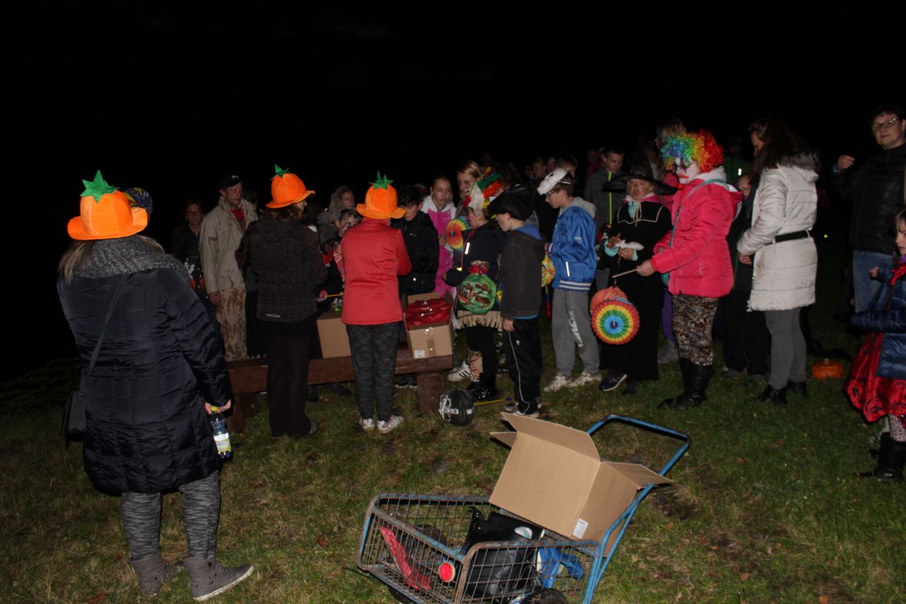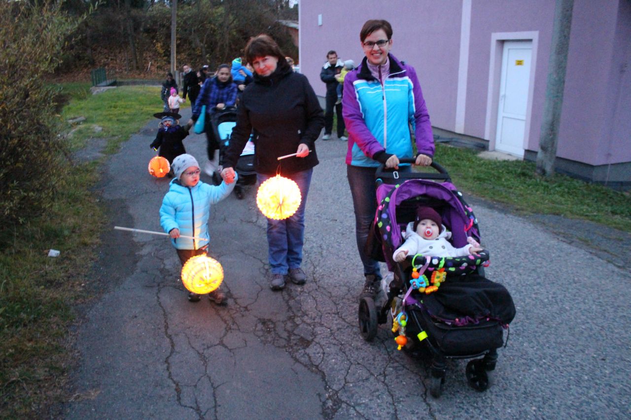 Již druhým rokem jsme připravili pro děti a rodiče oslavy Halloweenu s překvapením. Protože nám i tentokrát přálo počasí, začaly se před 18. 00 hodinou scházet na náměstí ve velkém počtu nádherné masky upírů, kostlivců, zombie či roztomilé malé dýně. Někteří se na svých kostýmech opravdu pěkně vyřádili. Průvod se vydal směrem na místní koupaliště, kde už čekalo překvapení - každé z dětí dostalo vodní lampionek štěstí. Po zapálení a vypuštění na vodní hladinu se rozsvítilo celé koupaliště. Poté se děti vracely zpátky na fotbalové hřiště, které bylo vyzdobeno dýněmi, strašidelným pavoukem, oběšenci, duchy, netopýry a letos také svítícími balónky. Komu po cestě vyhládlo, mohl si opéct buřta nebo ochutnat dýňovou buchtu. Pro prochladlé byl připravený teplý čaj a pro všechna odvážná strašidla ještě malá sladkost. Podle pozitivních ohlasů dospělých a spokojených dětí se akce povedla.