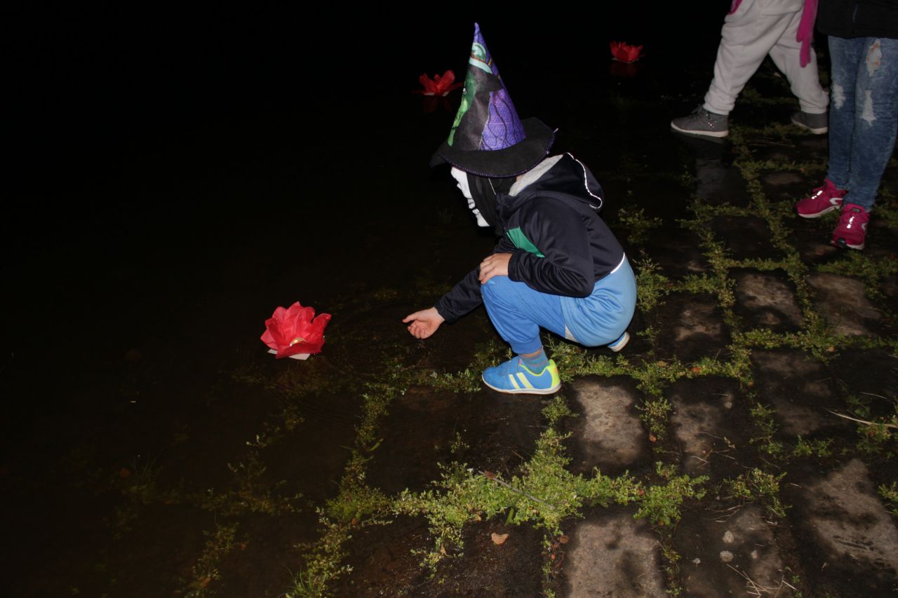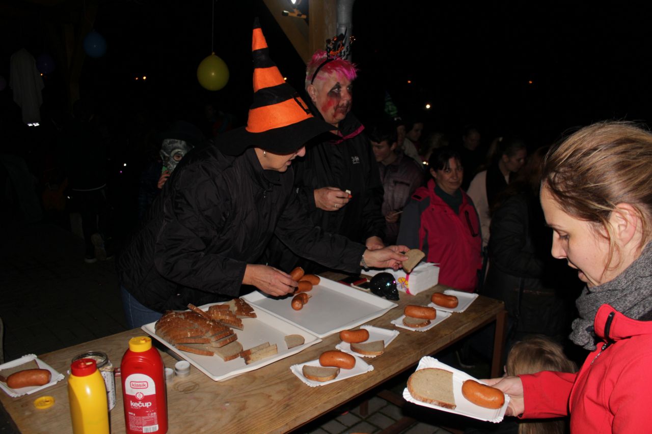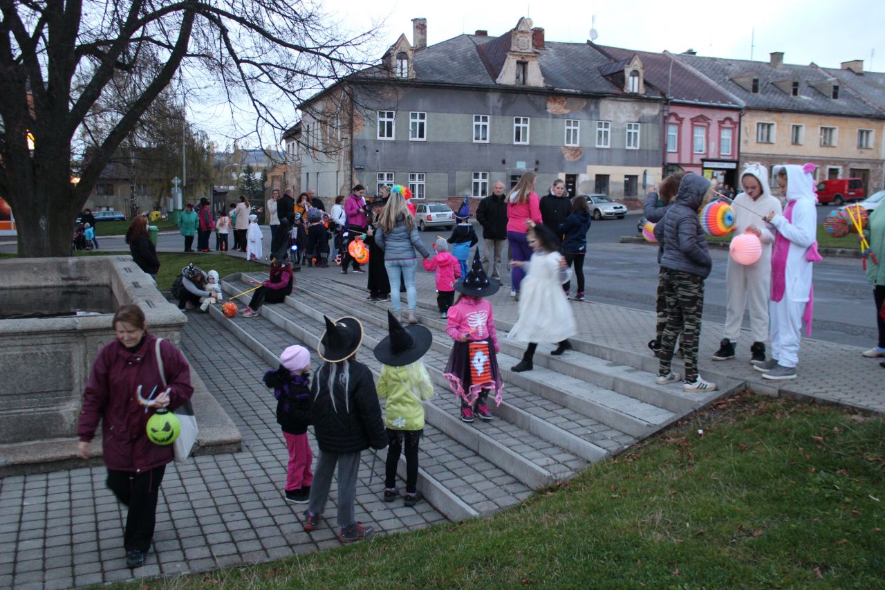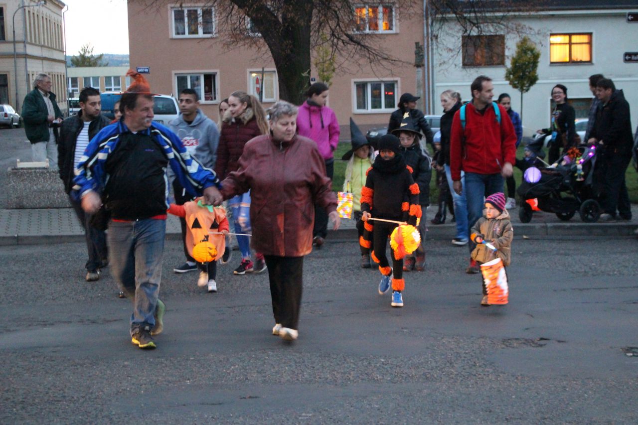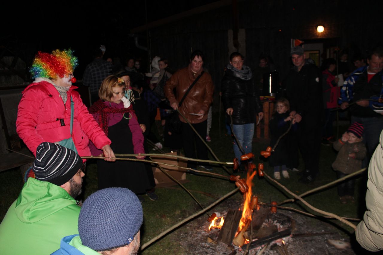 Již druhým rokem jsme připravili pro děti a rodiče oslavy Halloweenu s překvapením. Protože nám i tentokrát přálo počasí, začaly se před 18. 00 hodinou scházet na náměstí ve velkém počtu nádherné masky upírů, kostlivců, zombie či roztomilé malé dýně. Někteří se na svých kostýmech opravdu pěkně vyřádili. Průvod se vydal směrem na místní koupaliště, kde už čekalo překvapení - každé z dětí dostalo vodní lampionek štěstí. Po zapálení a vypuštění na vodní hladinu se rozsvítilo celé koupaliště. Poté se děti vracely zpátky na fotbalové hřiště, které bylo vyzdobeno dýněmi, strašidelným pavoukem, oběšenci, duchy, netopýry a letos také svítícími balónky. Komu po cestě vyhládlo, mohl si opéct buřta nebo ochutnat dýňovou buchtu. Pro prochladlé byl připravený teplý čaj a pro všechna odvážná strašidla ještě malá sladkost. Podle pozitivních ohlasů dospělých a spokojených dětí se akce povedla.
