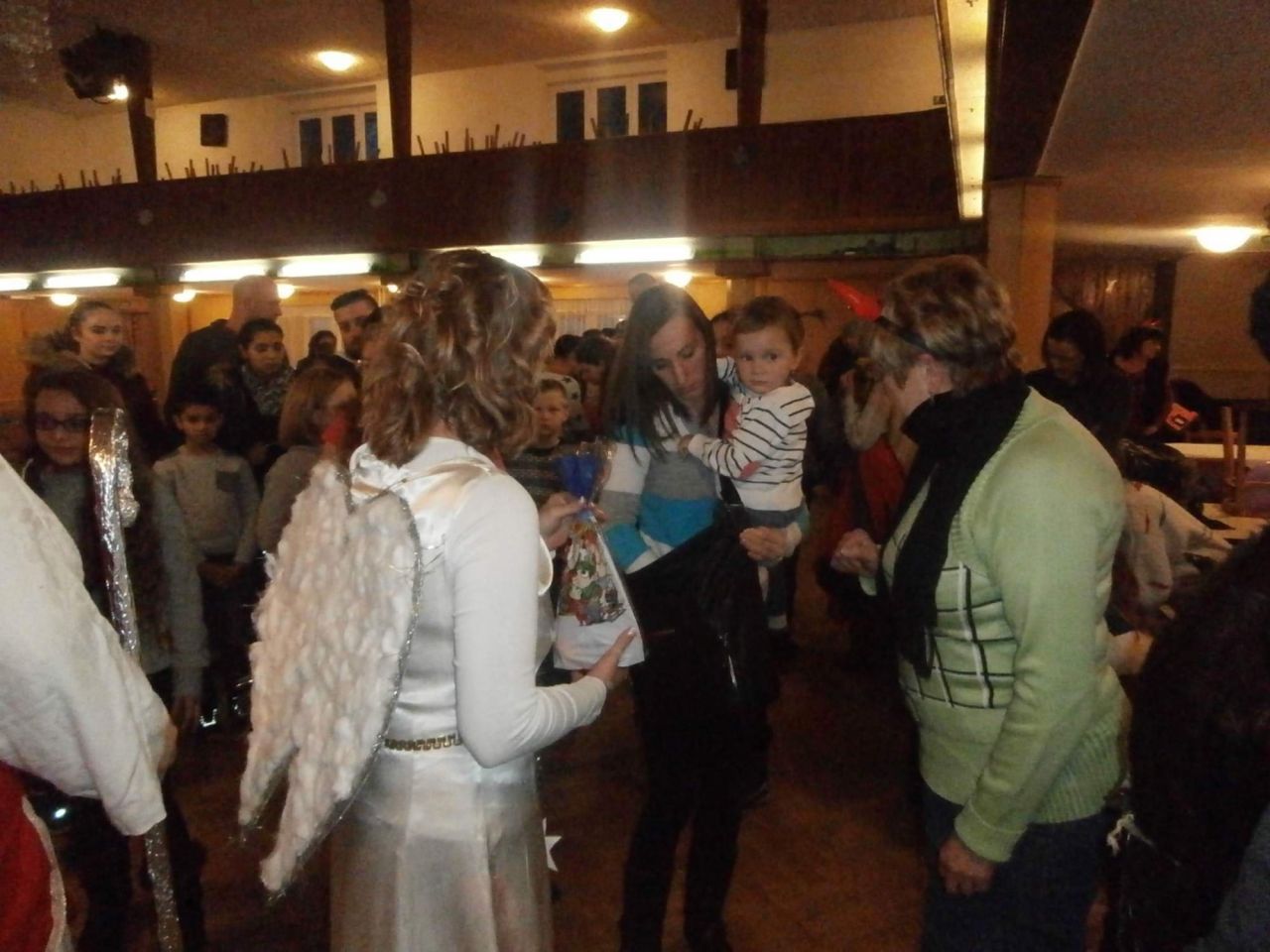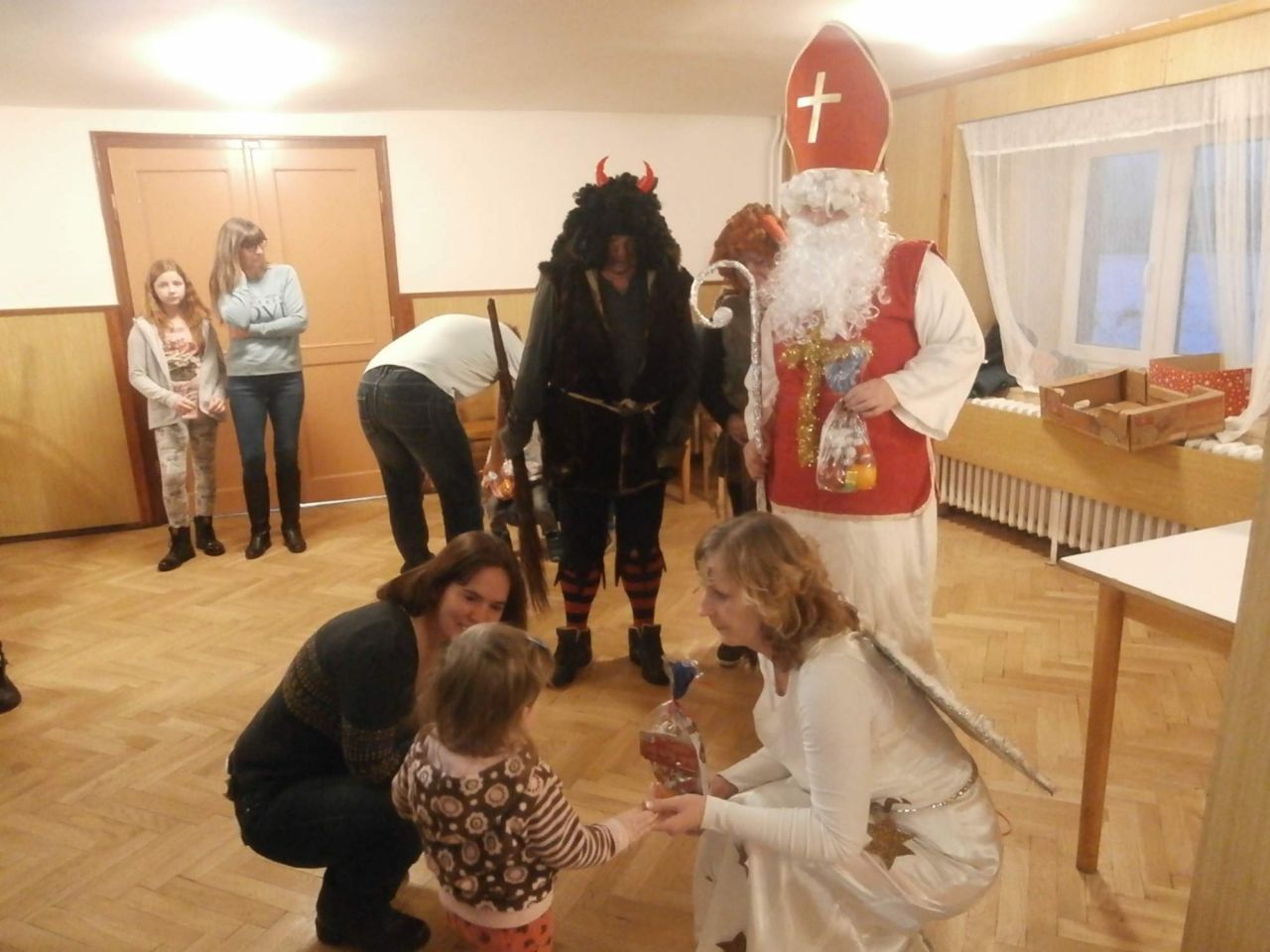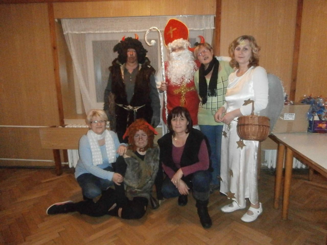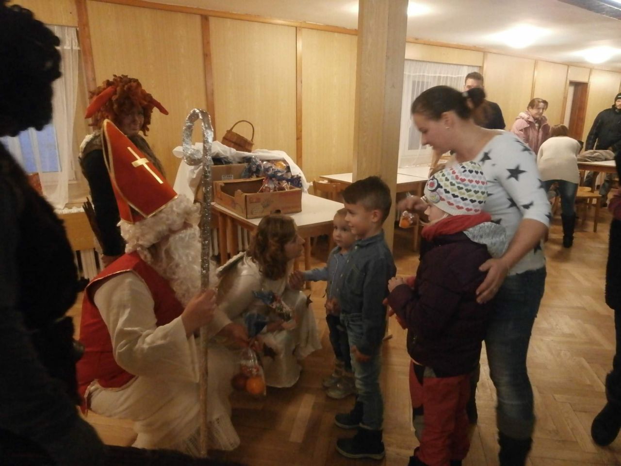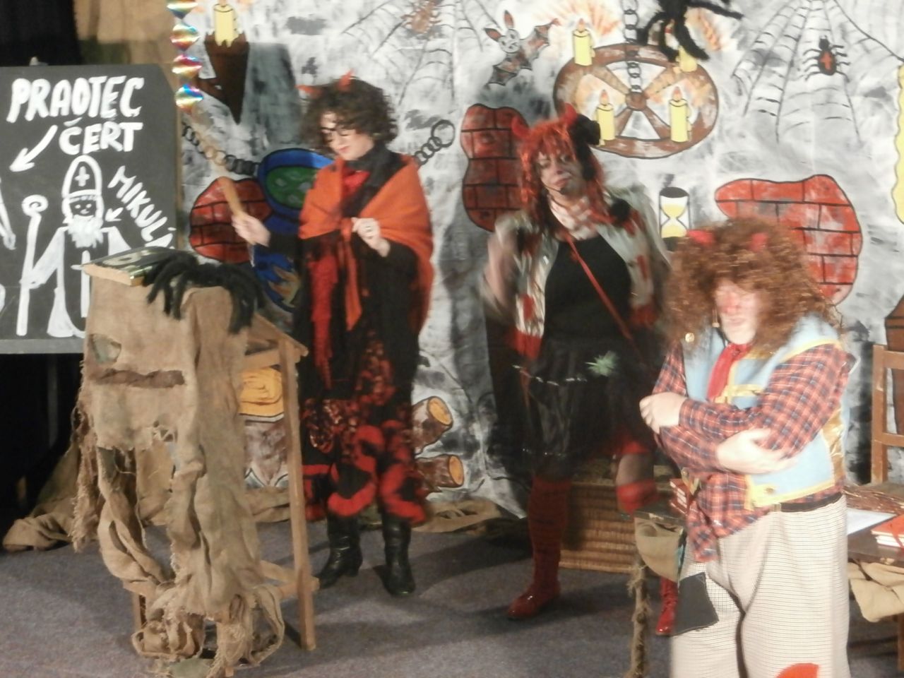 Po představení už děti s napětím očekávaly příchod Mikuláše, místo toho mezi ně vlítli dva čerti, kteří dětem nahnali strach, ale když vstoupil do sálu Mikuláš s andělem a vlídným slovem promluvil k dětem, uklidnili se i hluční čerti. Všechny děti byly Mikulášem obdarovány sladkými pamlsky a ovocem. Ti zlobivější se mohli vykoupit písničkou či básničkou. Čerti je pro jistotu přesto preventivně postrašili, aby na své sliby do příštího roku nezapomněly.