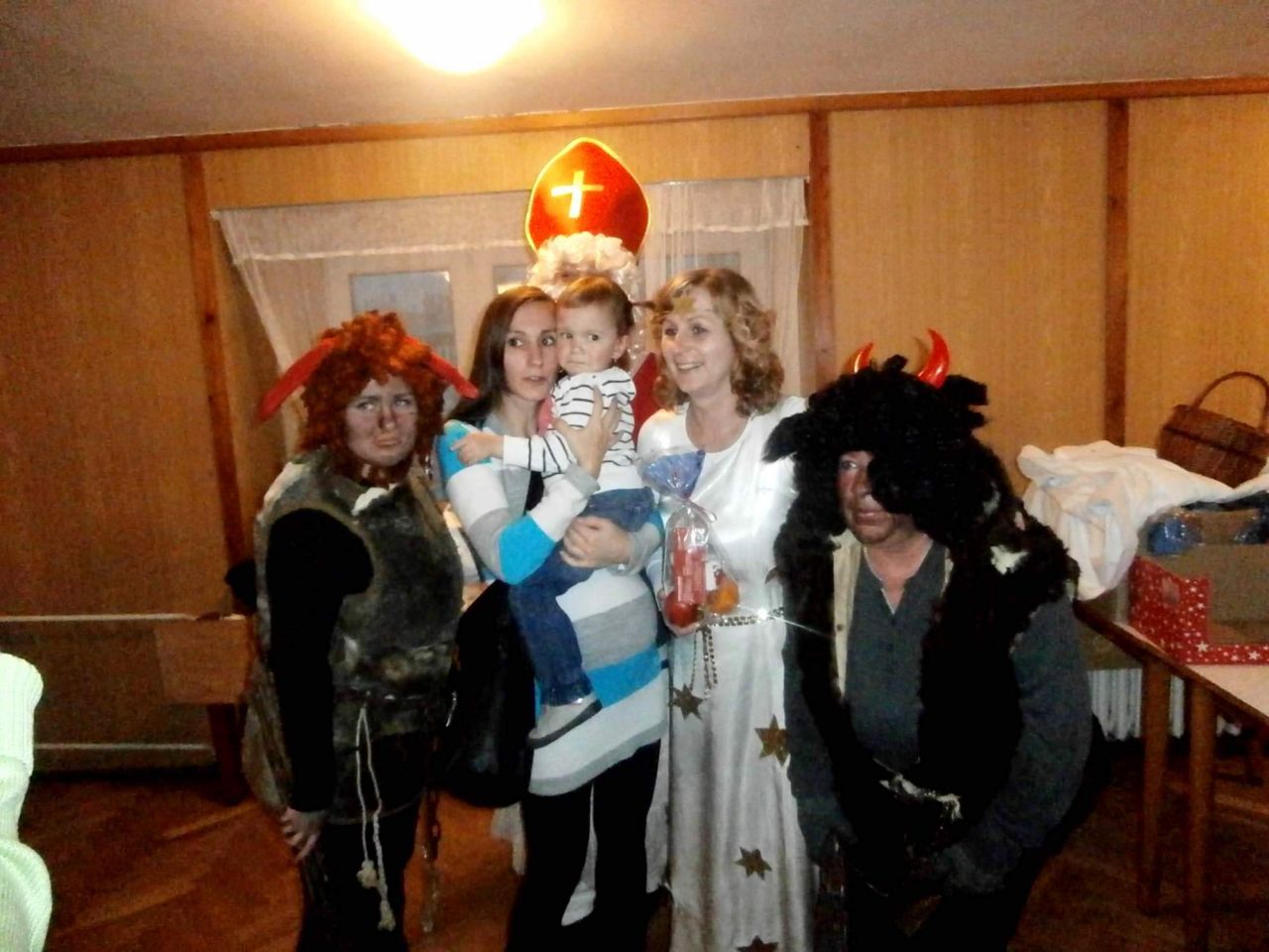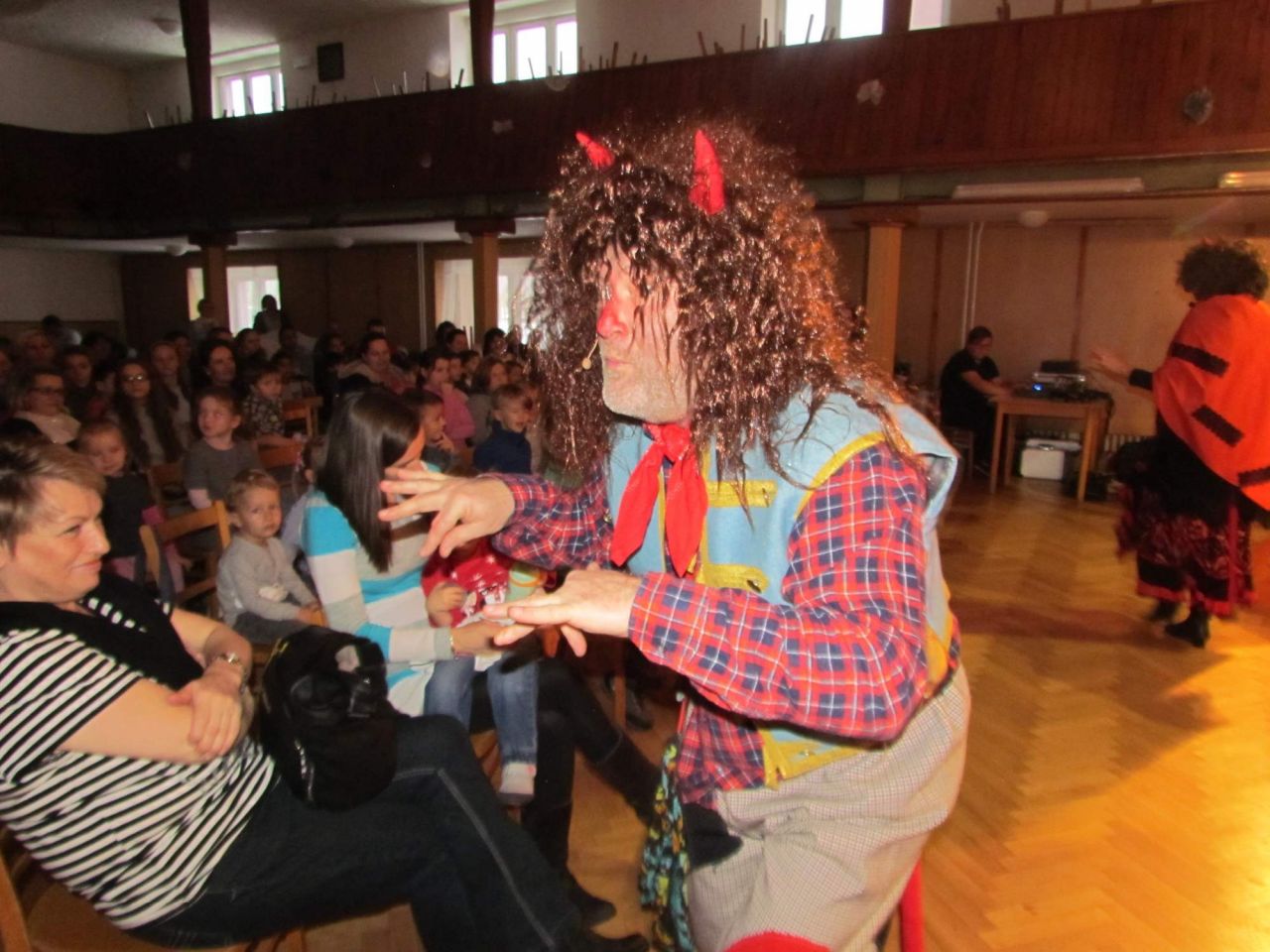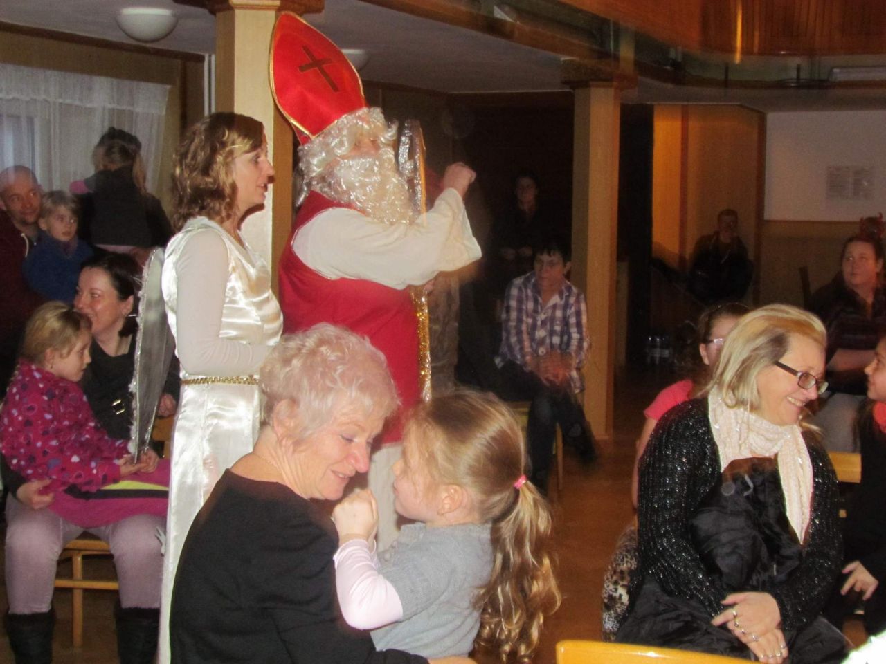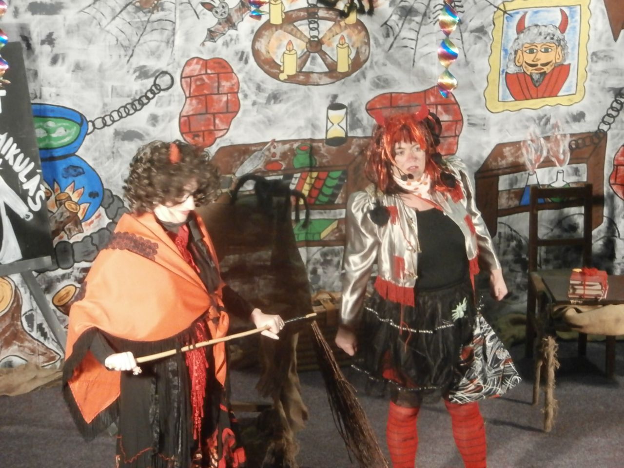 Po představení už děti s napětím očekávaly příchod Mikuláše, místo toho mezi ně vlítli dva čerti, kteří dětem nahnali strach, ale když vstoupil do sálu Mikuláš s andělem a vlídným slovem promluvil k dětem, uklidnili se i hluční čerti. Všechny děti byly Mikulášem obdarovány sladkými pamlsky a ovocem. Ti zlobivější se mohli vykoupit písničkou či básničkou. Čerti je pro jistotu přesto preventivně postrašili, aby na své sliby do příštího roku nezapomněly.