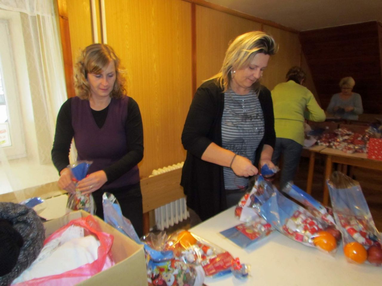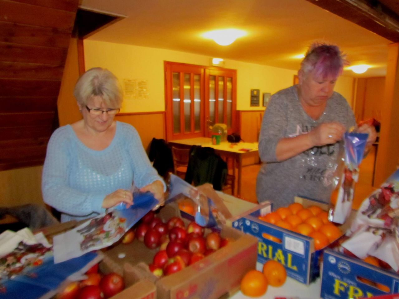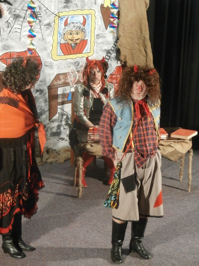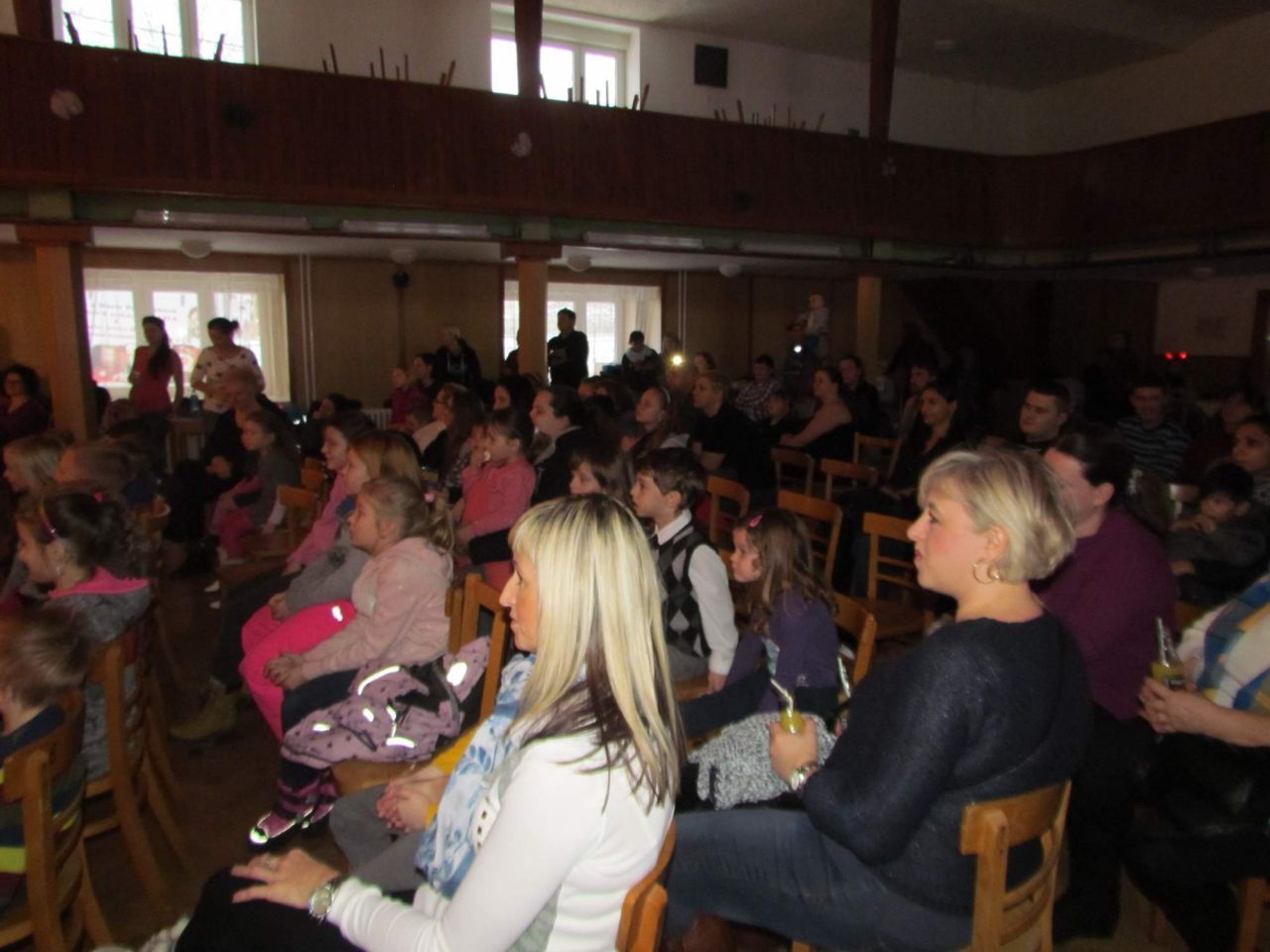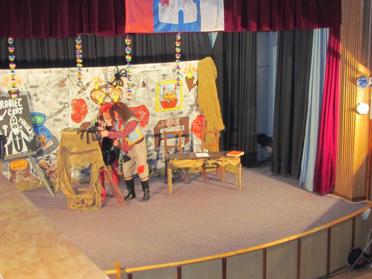Po představení už děti s napětím očekávaly příchod Mikuláše, místo toho mezi ně vlítli dva čerti, kteří dětem nahnali strach, ale když vstoupil do sálu Mikuláš s andělem a vlídným slovem promluvil k dětem, uklidnili se i hluční čerti. Všechny děti byly Mikulášem obdarovány sladkými pamlsky a ovocem. Ti zlobivější se mohli vykoupit písničkou či básničkou. Čerti je pro jistotu přesto preventivně postrašili, aby na své sliby do příštího roku nezapomněly.