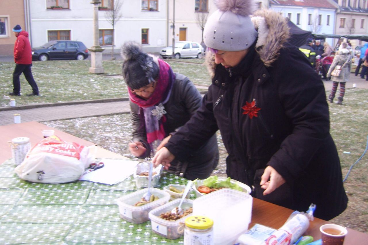 Tato akce je již tradičně doplněna o vánoční mini trhy. K prodeji byly připraveny adventní věnce, jmelí, vánoční perníčky, svíčky z vosku a jiné včelí produkty. Návštěvníci si také mohli předvánočně zamlsat na mini zákuscích, ochutnat pražené oříšky, jitrnice, jelítka nebo se zahřát horkým nápojem či medovinou. Součástí bochovských oslav Adventu je vánoční soutěž o nejchutnější pokrm. Letos se snažily hospodyňky uvařit staročeského Kubu. A povedlo se! S tímto úkolem se nejlépe vypořádala p. Olinka Navrátilová. Na druhém místě skončila podle hodnocení ochutnávajících p. Olča Vonšovská, a jen o malý rozdíl v hlasech se na třetím místě umístila p. Terezie Tkáčová. Blahopřejeme.