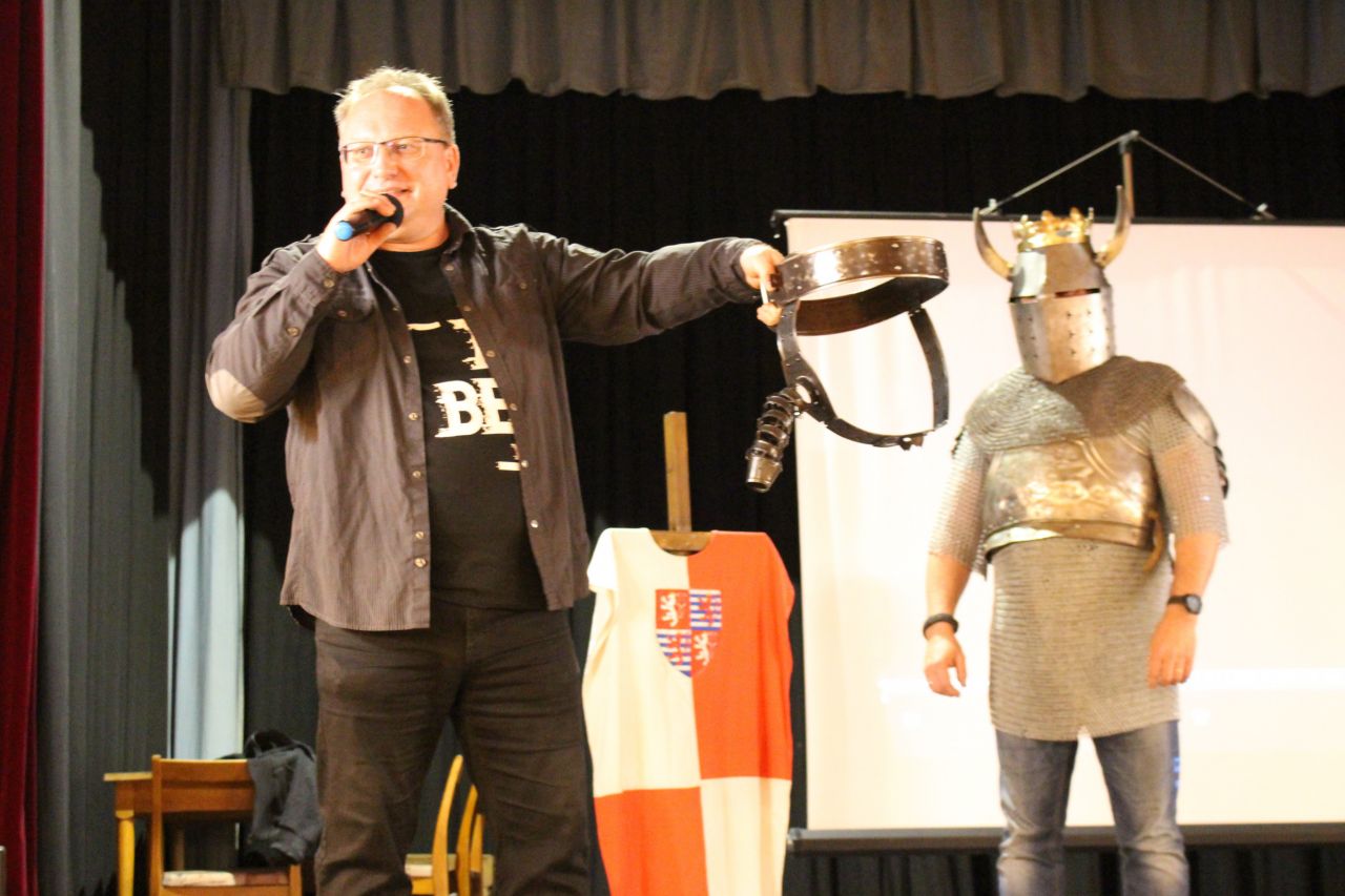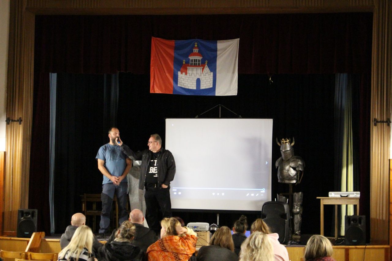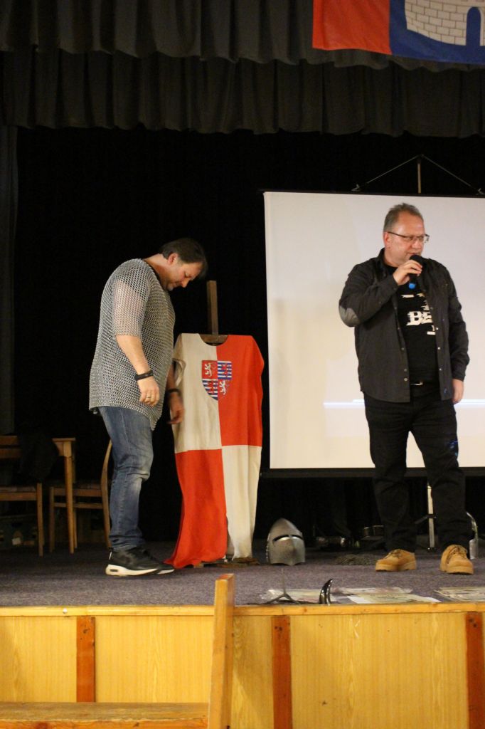 Třetí listopadovou sobotu jsme v našem kulturním domě zažili výjimečné putování. Historický badatel Libor Marek přijel do Bochova představit dva zajímavé dokumenty z našeho kraje. První dokument rozmotával léty zamotané pověsti z Andělské hory. Dozvěděli jsme se více z pověstí o nalezené předlouhé kostře, o pokladu schovaném ve zdi, o známé krásné Alvíně, ale i o dodnes strašícím alchymistovi Tentzelovi. Pověsti doprovázeli nádherné záběry z Andělské hory. Druhý dokument vyprávěl nám jistě známější příběhy z Hartenštejna. Samozřejmostí byla legenda o bílé paní Hartenštejské. Pak přišel čas i na méně známější pověsti. Třeba pověst o dvou hladovějících bratřích, kteří se v bitce o chleba navzájem zavraždili. Nebo o tajemném pokladu, který se nechtěl nechat najít a možná ve zdech Hartenštejna čeká dodnes. Při vstupu byla malá soutěžní anketka na téma třetího dokumentu. Mohli jsme si vybrat mezi zříceninou Týřov, Valdek a zámkem Klenová. Zámek Klenová nakonec vyhrál a tak jsme si mohli vychutnat pověsti o Kryštofovi Harantovi, nevinných mniších či o kruté hradní paní, která se touhou po potomkovi nakonec změnila a dočkala vytouženého miminka. Nakonec nás čekalo vyhlášení soutěže, kde výherci mohli vyhrát zlatou minci či film o hradu Skála, od našeho přednášejícího badatele pana Marka. Úplným závěrem jsme si mohli prohlédnout a někteří i vyzkoušet zajímavé historické artefakty.