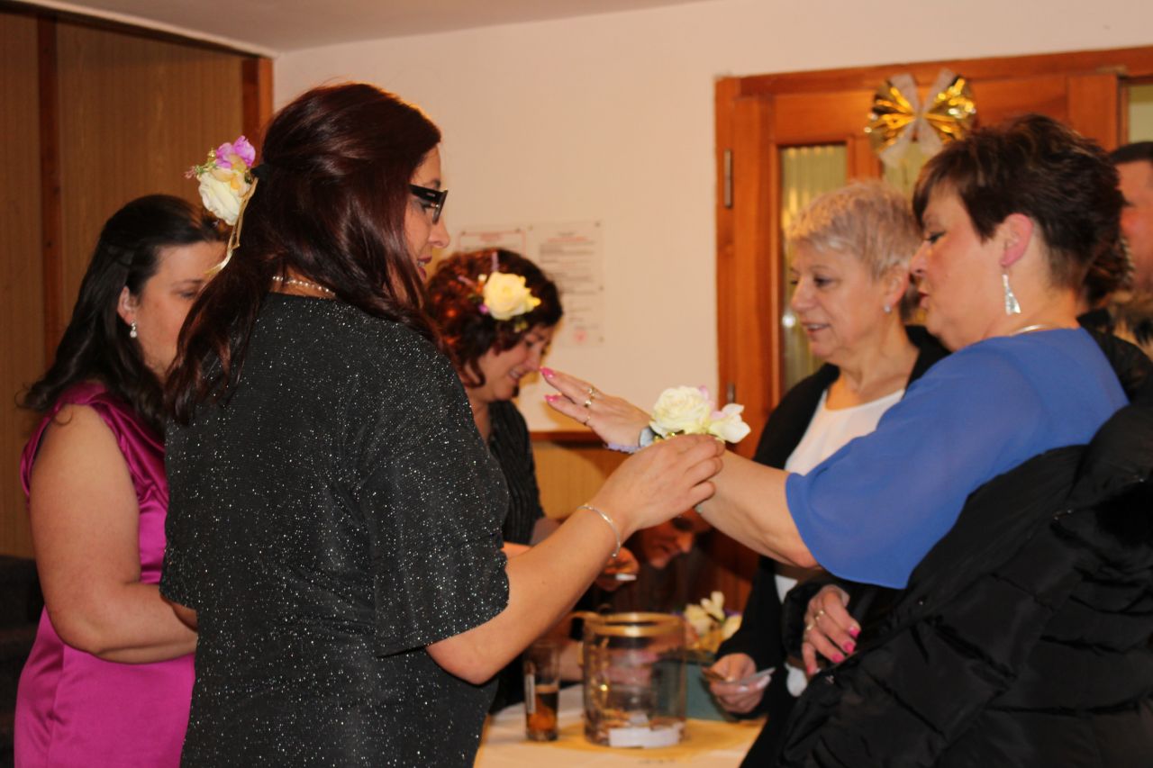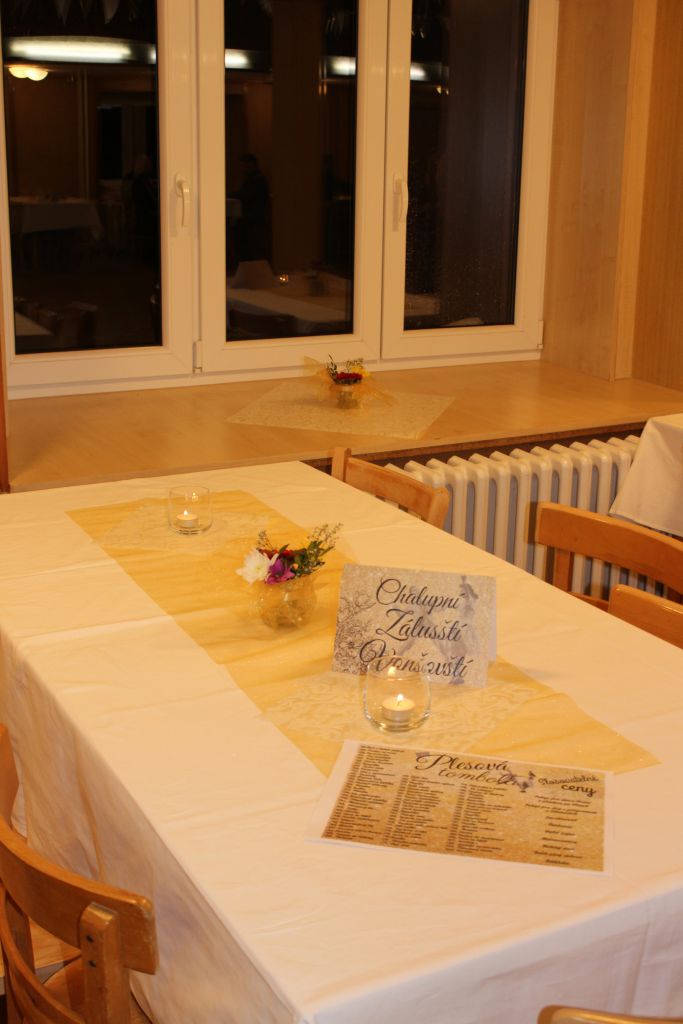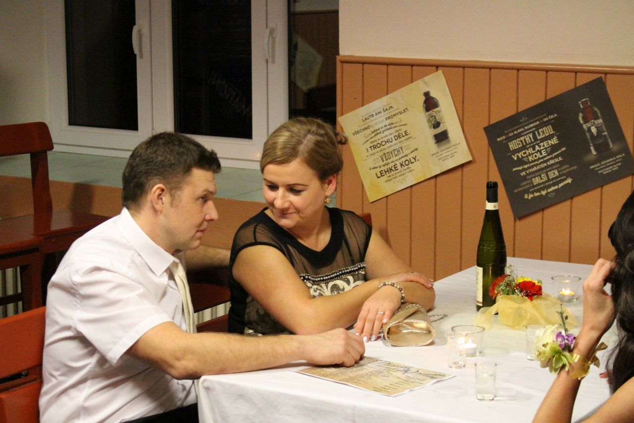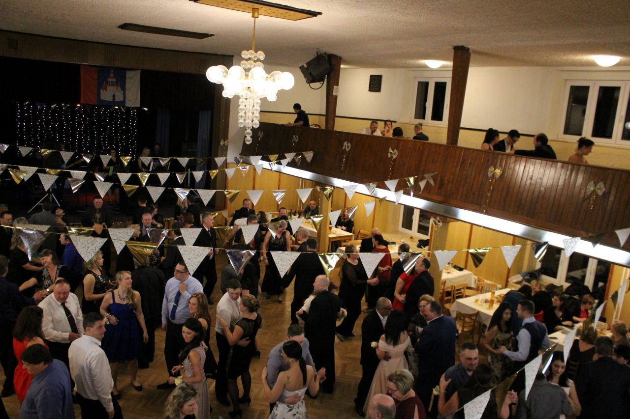 Již před osmou hodinou večerní začínali přicházet první hosté dychtící po zábavě a tanci. Každému byla u vstupu odstřižena část vstupenky, aby mohl o půlnoci vyhrát některou z našich hodnotných slosovatelných cen. Dámám se u vstupu dávala květina. Ale ne ledajaká, letos jsme zavedli novinku, kterou byl květinový náramek. Podle reakcí dam i některých mužů, se květinky líbily, za což jsme byli velmi rádi. Kulturní dům se postupně zaplňoval a všude se pohybovali velmi elegantně oblečené dámy a šarmantní muži. Kapela Doupováci krásně podbarvovala atmosféru začátku plesu a po chvilce se dočkala prvních odvážlivců na parketě. Ze začátku na parketu kroužily dva páry, které se zanedlouho dočkaly dalších tanečních párů.