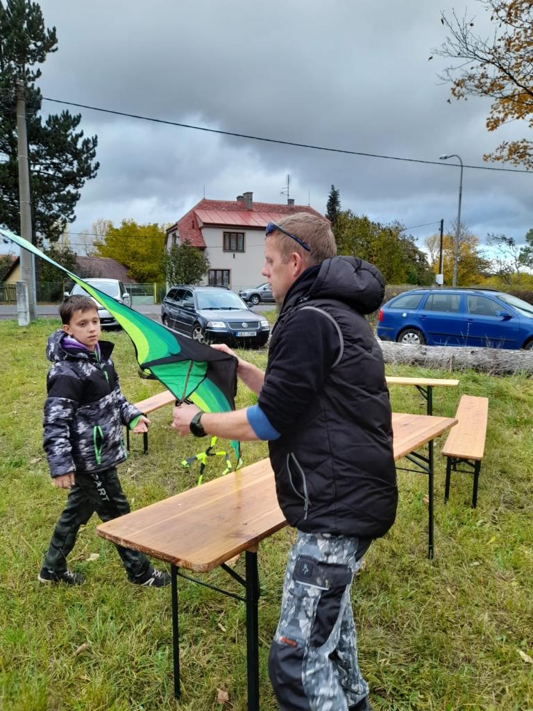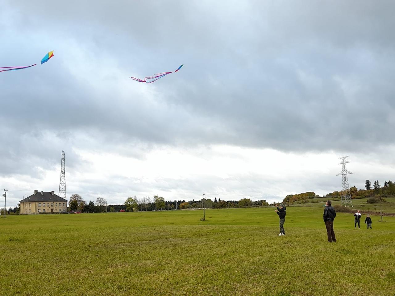 V sobotu 28.10. za krásně větrného počasí se nám na pole za Agrafou slétlo 40 draků. Nad hlavou nám plachtila beruška, kobra, motýlek, jednorožec a plno krásných draků. Do soutěže nám přilétlo 5 dráčků a protože bylo těžké vybrat nejhezčího ....ocenili jsme všechny. Nechyběl ani ohníček a vůně opečených špekáčků byla cítit na dálku. Cenu za největšího draka dostali Navrátilovi