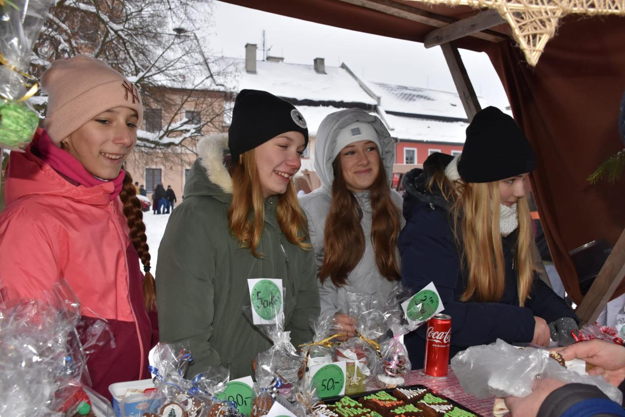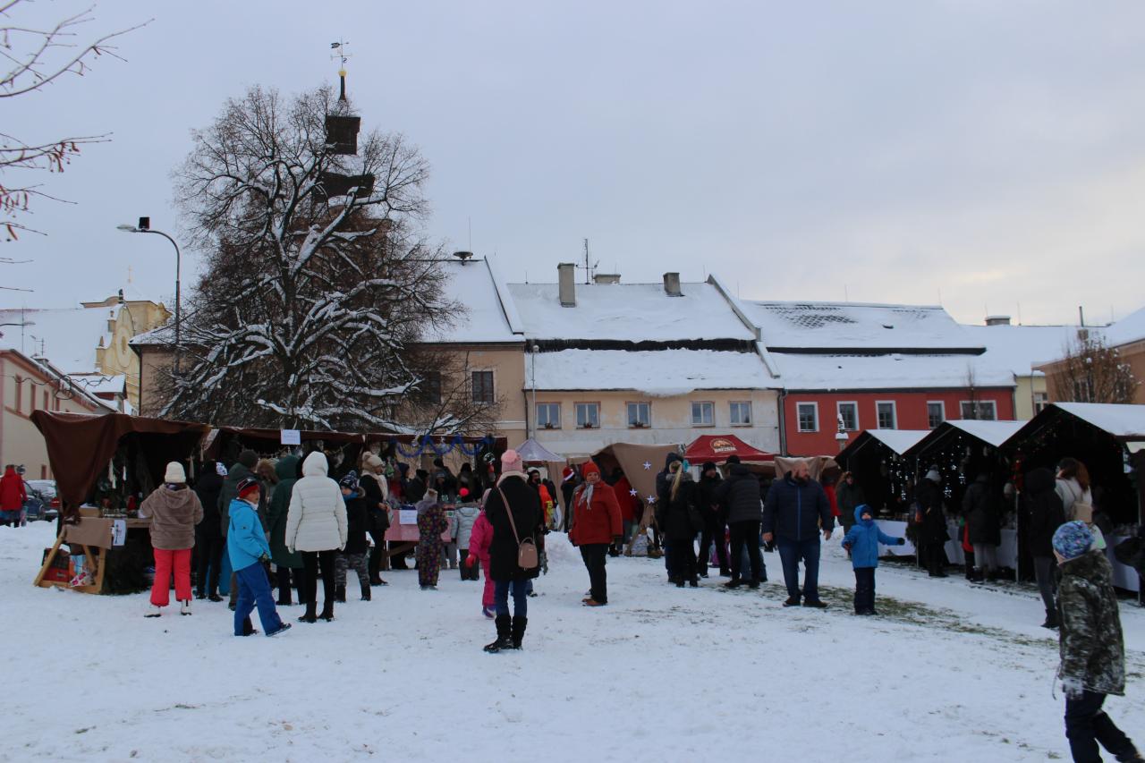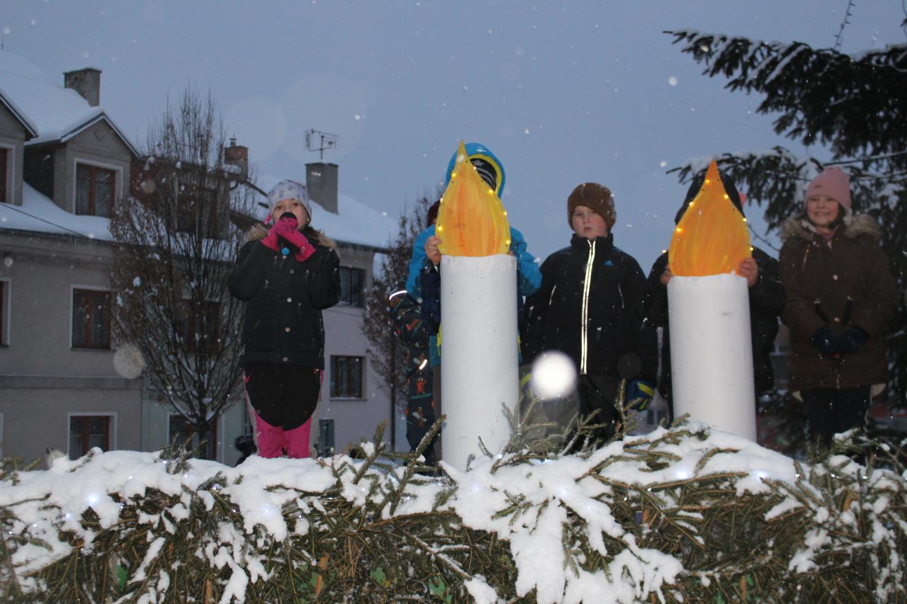 A je to tu.. 3.12.2023.....první adventní neděle, první svíčka hoří na adventním věnci. Náměstí zkrášlené vánočním osvětlením a stánky plné překrásných výrobků našich dětí ze školy, přípravky a školky. Zvířátka si smlsnou na dobrůtkách a moc děkují za vše, co dostala. Vánoční atmosférou nás naplnilo vystoupení dětí z mateřské školy, z přípravné třídy a ze základní školy. Odpočet a rozsvícení našeho vánočního stromu byl třešnička na dortu. Děkujeme všem, kteří si přišli užít ty krásné chvíle, děkujeme všem paním učitelkám a pánům učitelům za úžasný dětský jarmark, panu starostovi a panu faráři za krásná slova, panu Mottlovi a holkám ze sklípku za hřejivé svařáky a voňavé občerstvení, pracovní četě za postavení stánků a hlavně všem dětem, které vytvořily všechny ty krásné věcičky ve stáncích. Začínají svátky vánoční....
