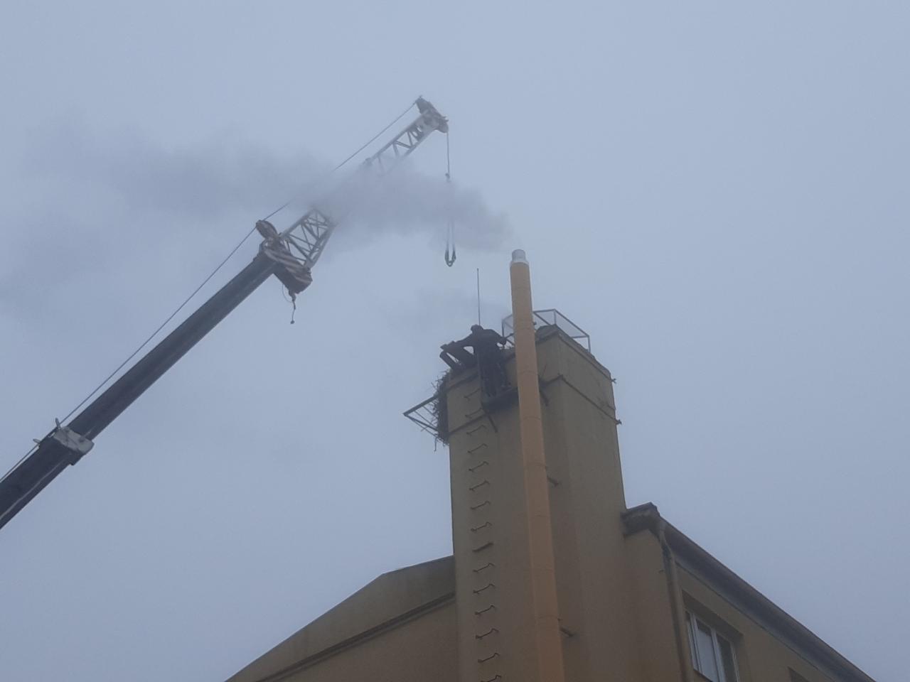 Dne 16.2.2024 začala oprava komína centrální kotelny. Čapí hnízdo bylo opatrně sneseno. Po ukončení opravy komína a po prohlídce ornitologů, bude čapí hnízdo umístěno zpět na komín, aby čápi mohli zahnízdit.