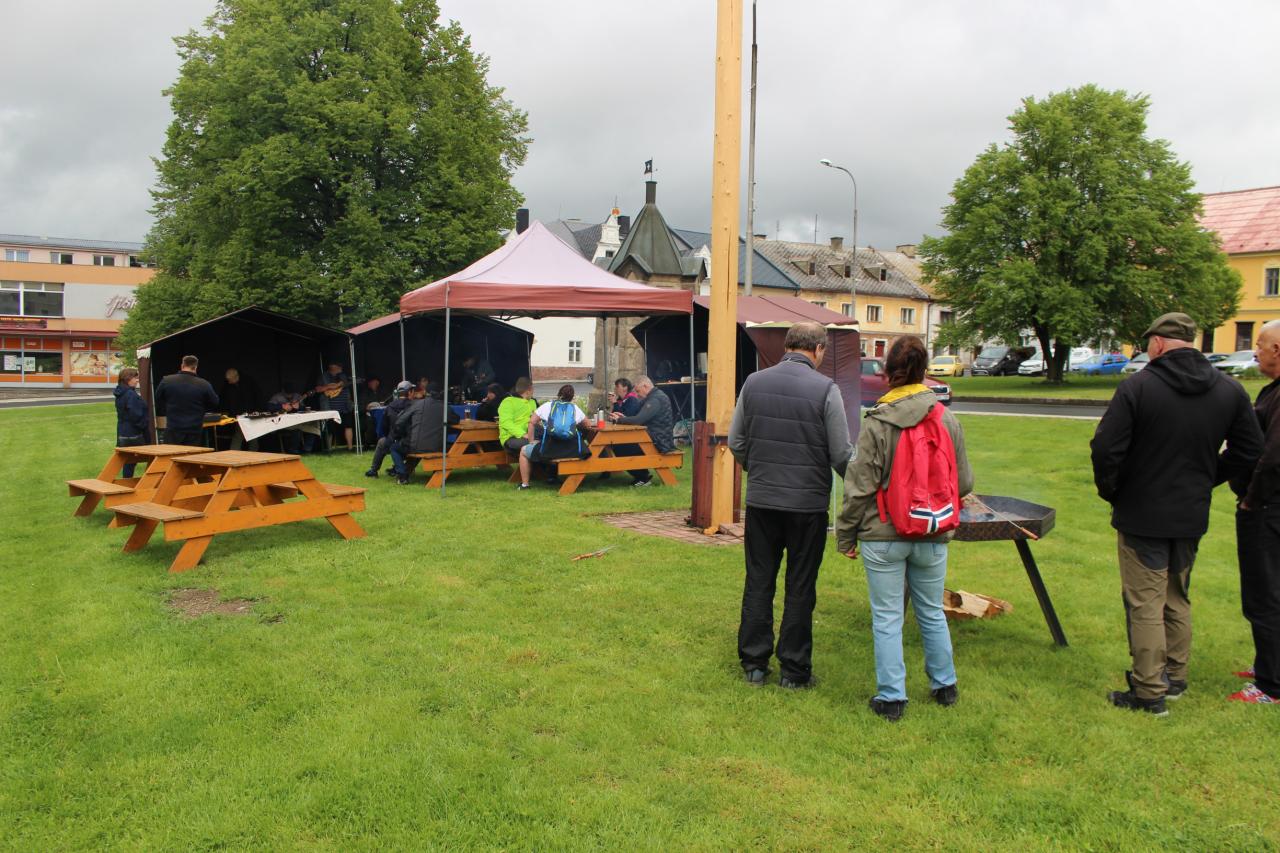 I přes nepříznivé počasí se houf nadšenců sešel v sobotu 18.5.2024 ráno na náměstí odkud nás odvezl autobus společnosti ZEPRA s.r.o. s příjemným řidičem Martinem Pechočiakem do Údrče, kde byla první zastávka, ze které se šlo kratší trasou zpět zadem do Bochova. Dále autobus pokračoval do Polomi, odkud jsme se vydali pěšky do nádherného kostela ve Skokách, kde se nás ujal pan, který měl pro nás připravenou krásou prohlídku kostela s výkladem. Zde jsme měli možnost zakoupit si občerstvení, než jsme se vydali po vyznačených trasách zpět pěšky do Bochova. Ten, kdo chtěl navštívit kostel ve Skokách a nedal by celou túru, se vydal do Polomi, odkud účastníky šlapání odvezl autobus zpět do Bochova. Na zdatné turisty čekaly dvě trasy. Kratší z Údrče zadem po vyznačených šipkách do Bochova a delší trasa ze Skoků, přes Polom, Údrč a zadem do Bochova. Aby se nám monotónně nešlapalo, připravili jsme pro pěší řadu úkolů, které bylo potřeba po cestě plnit, jako například střelba šiškou na terč, zaskákej si panáka, piškvorky malé i velké, lesní socha a další. Pro cyklisty byly připraveny dvě trasy. Kratší trasa měřila zhruba 20 kilometrů a delší trasa měla o 10 km více, tedy 30 kilometrů. V cíli, na náměstí, na všechny příchozí i kolemjdoucí čekala naše oblíbená kapela 4R, která zahrála všem dobře známé písně. Každý účastník šlapání obdržel tlapičku, kterou nám s láskou vytvořila paní Galina Vildová. Celou akci jsme zakončili dokonale opečeným špekáčkem nebo párkem v rohlíku. Naše milá děvčata z kulturní komise upekly nadýchané buchty, makovce a perníky. Zahřát jsme se mohli teplým čajem, i když po zdolání všech kilometrů nám bylo teplíčko. Velice děkujeme klukům z čety za postavení stanů a pomoc při zahájení.