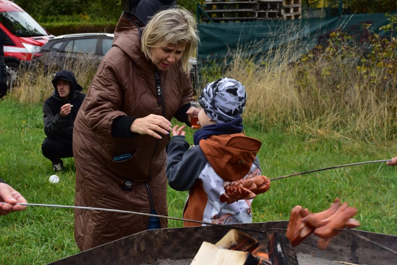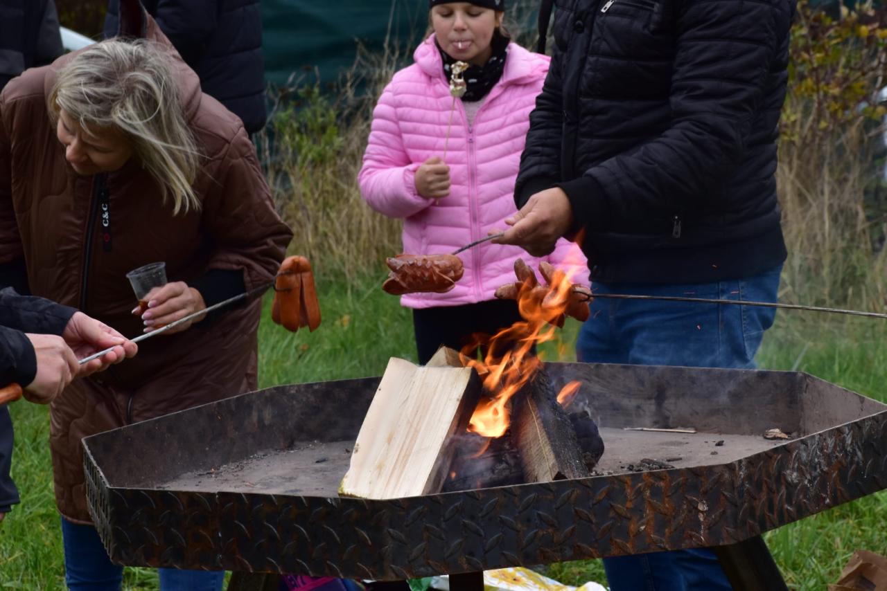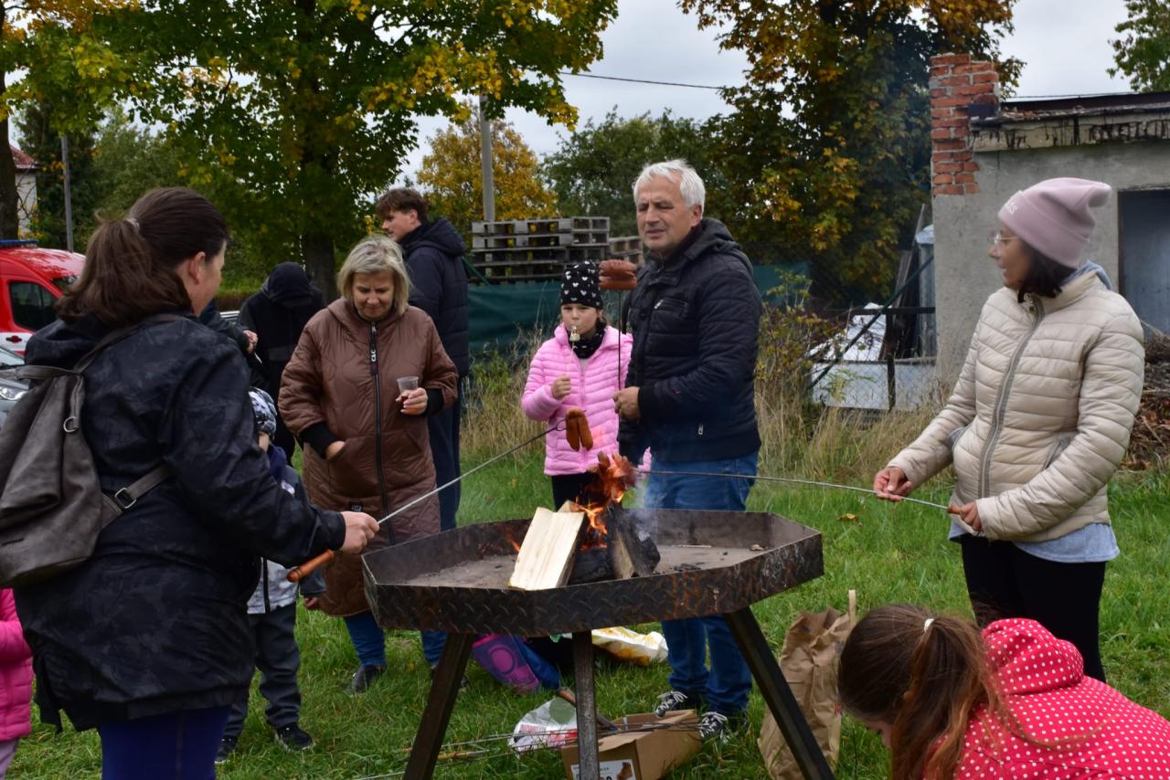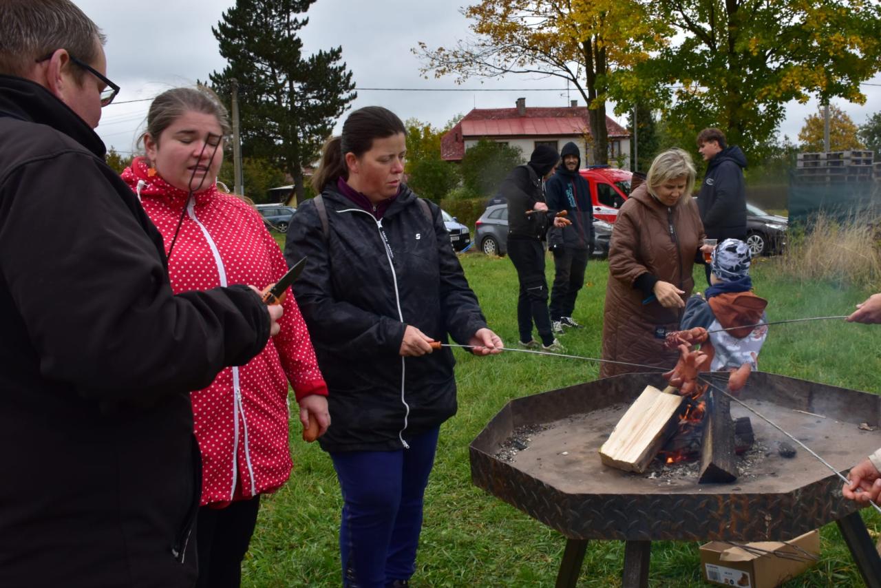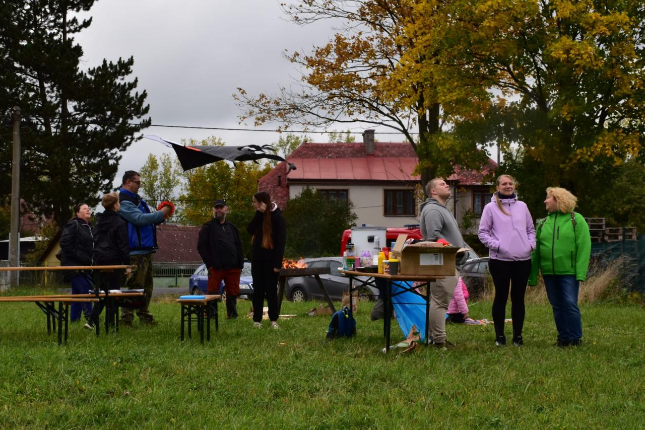 Když už byli dospěláci, děti i draci dostatečně vylítaní, byl čas na opečení doneseného vuřtíka. Vhod přišel účastníkům i teplý čaj a dezert, který upekla "naše komisařka" Terez.
