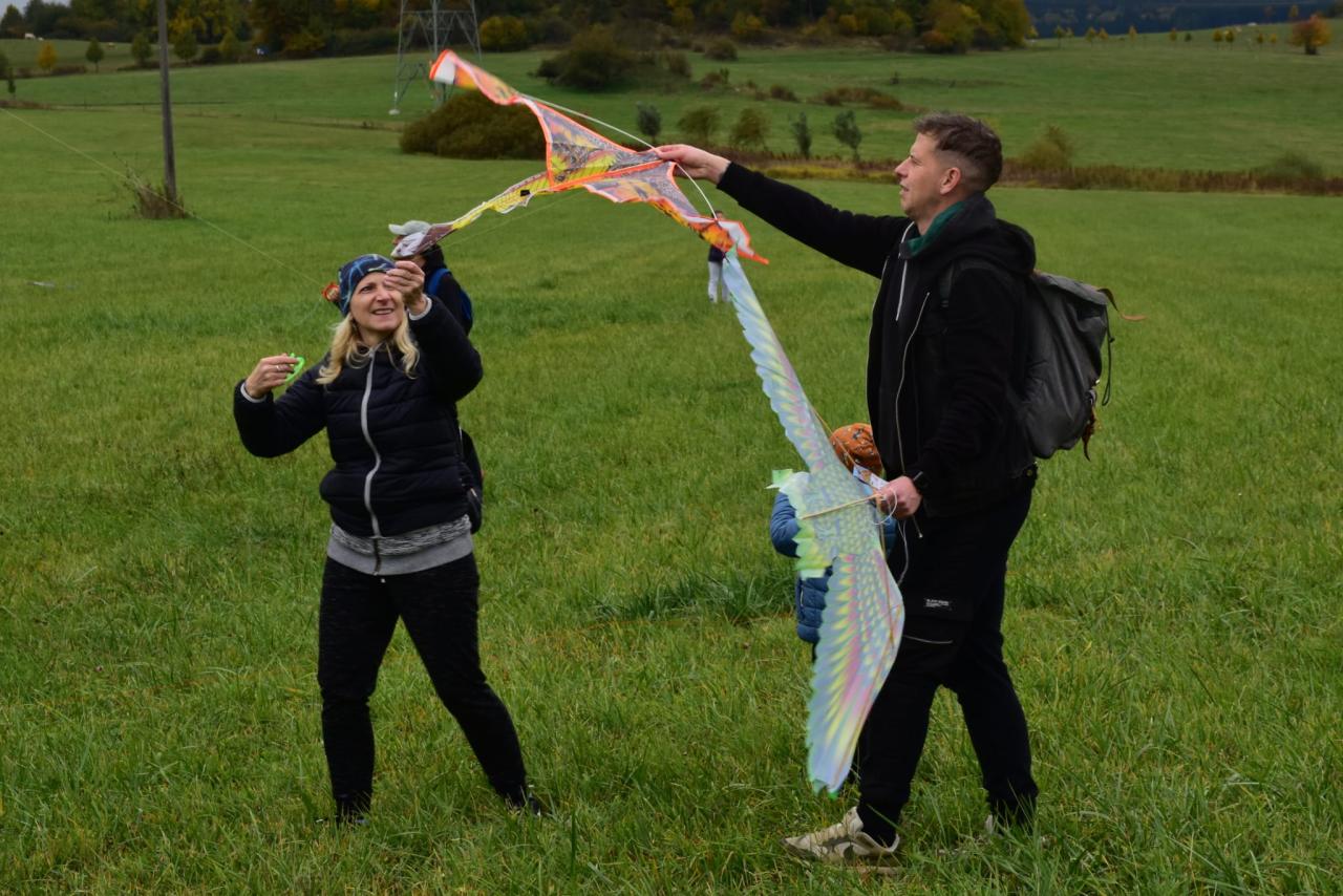 V sobotu 11.října nebylo počasí úplně na draka, a tak jsme se rozhodli, že je čas provětrat křídla těch, co právě na tohle počasí čekají skoro celý rok. Létajících strojů se nad polem "u bramborárny" vzneslo v různých podobách pěkná řádka.
