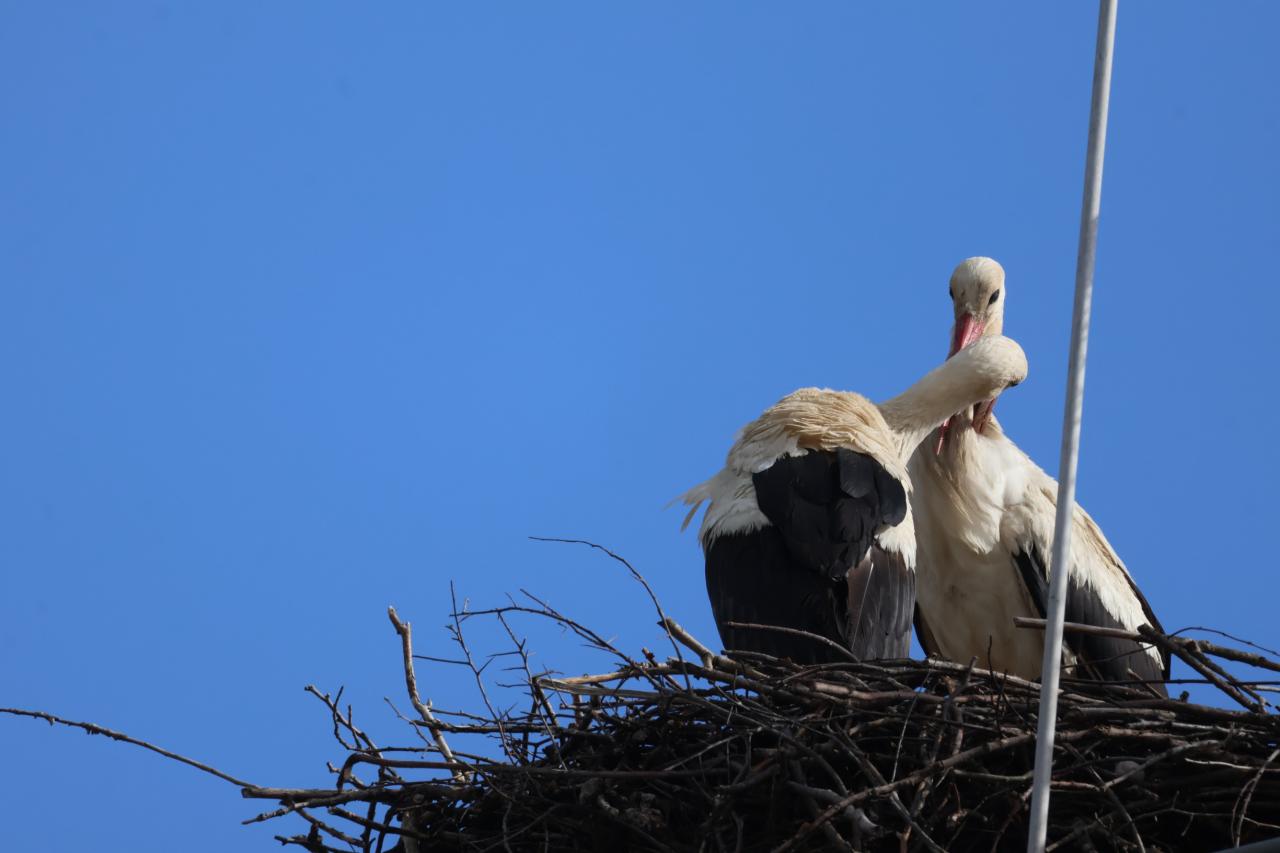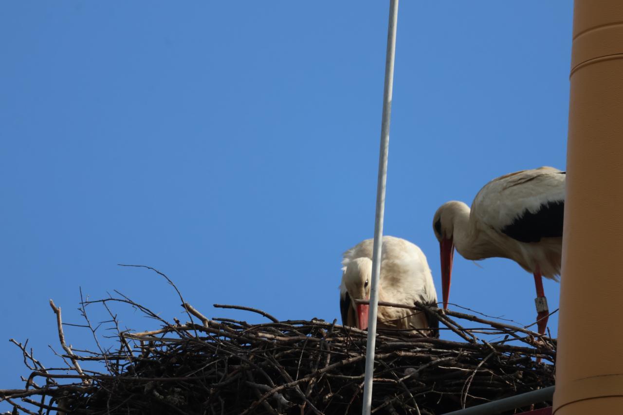 Máme tu nový čapí pár. Pan Rezek neviděl přímo páření, ale čapí kluk mlsně obcházel samičku. Sameček bez kroužku. Samička s kroužkem Elsa nečitelný.
