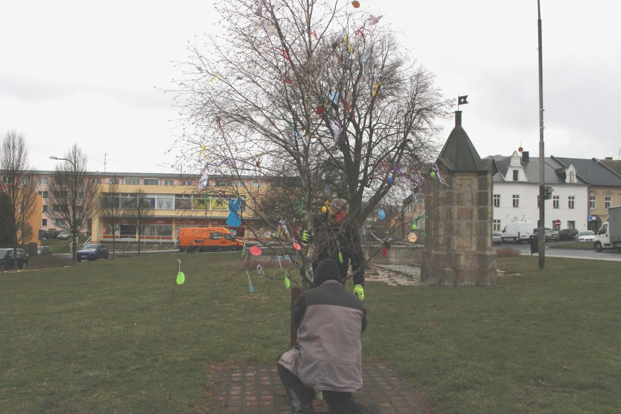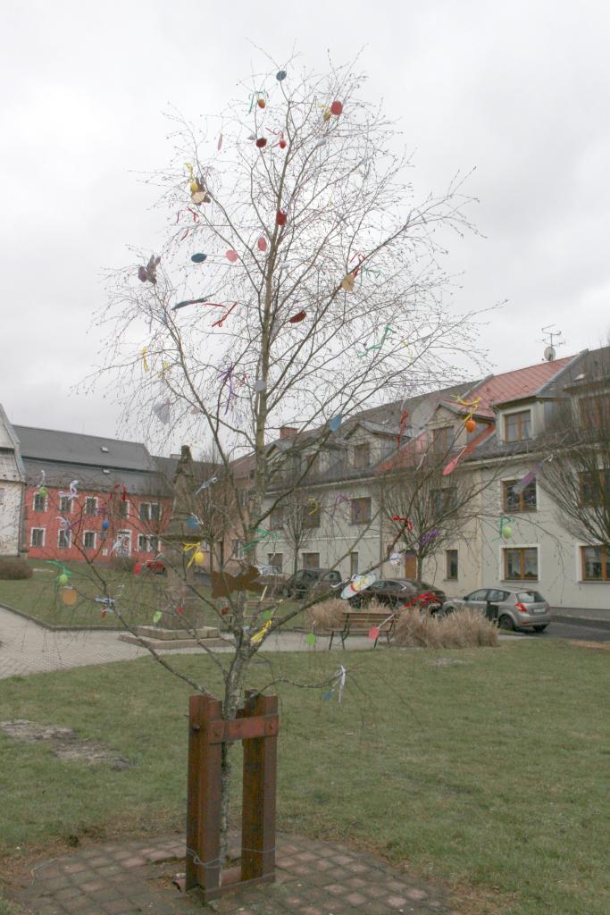 Díky šikovným ručkám našich bochovských dětí se náměstí proměnilo v jarní oázu plnou zajíčků a barevných kraslic. Děvčata z pracovní čety se postarala o květinovou výzdobu, chlapi bezpečně usadili břízku do stojanu a Radek Daniš upletl poctivé pomlázky.