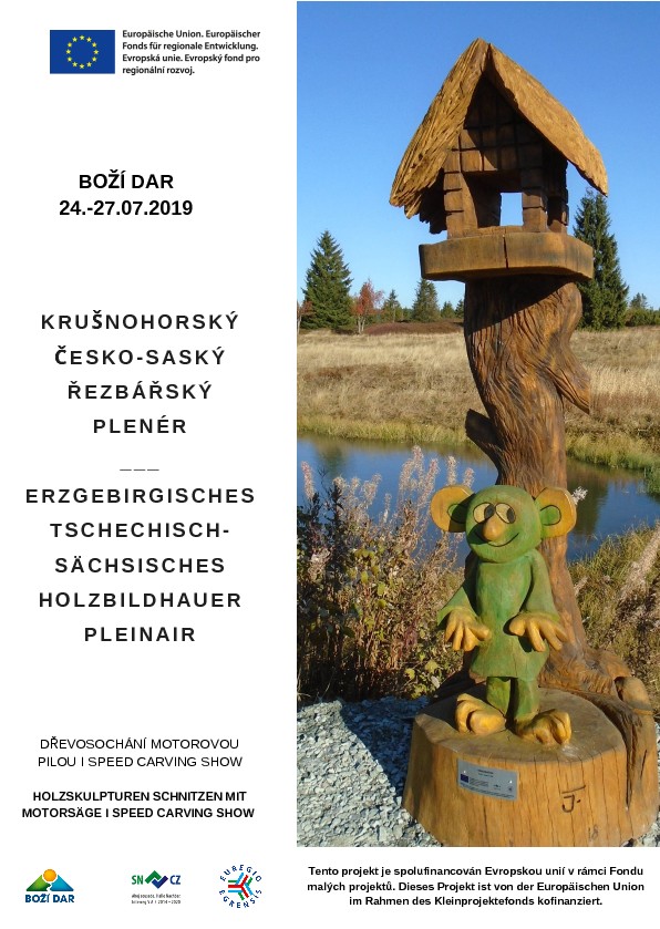 Úspěšná akce „Krušnohorský česko-saský řezbářský plenér“ bude díky EU projektu na Božím Daru pokračovat i letos od 24.července a vyvrcholí právě v sobotu, mimo jiné speed carving show od 15 hodin. Představí se amatérští dřevořezbáři a jejich práce obohatí mobiliář Ježíškovy cesty.