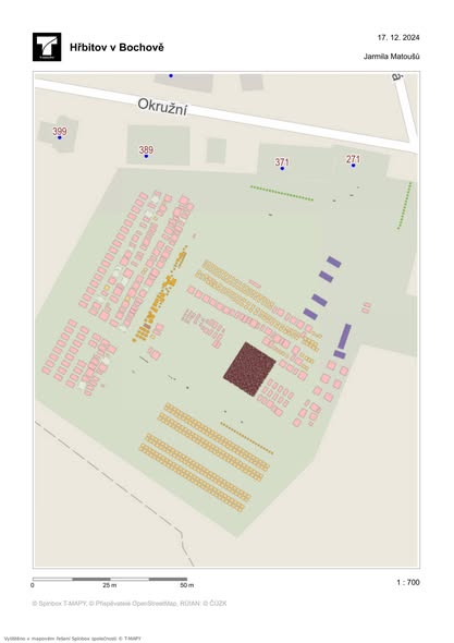 Mapa hřbitova v Bochově