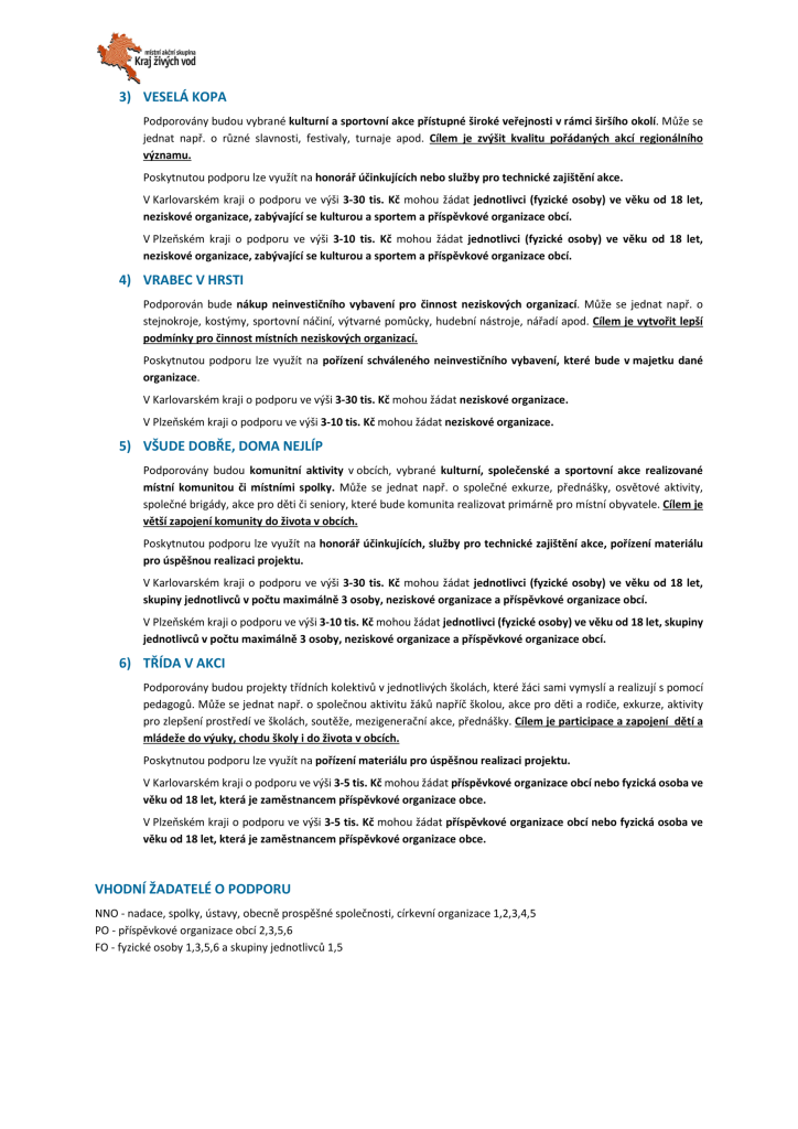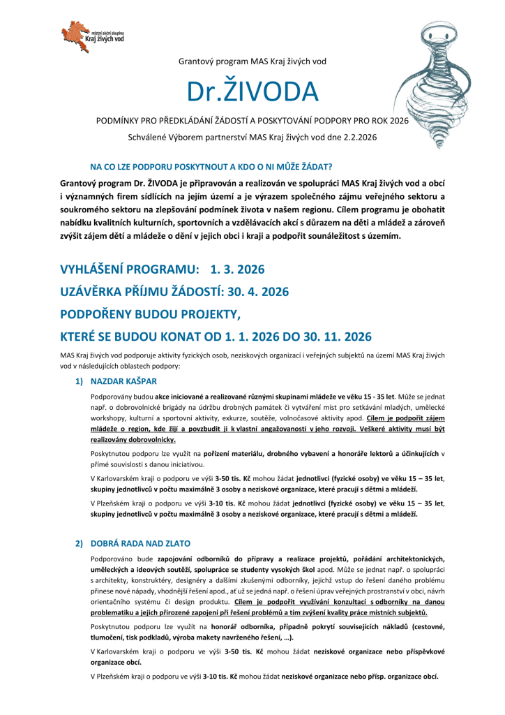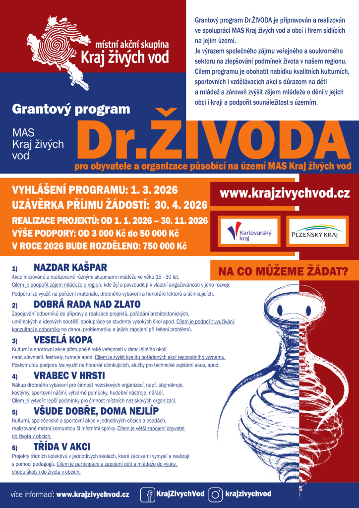 MAS Kraj živých vod ve spolupráci s místními obcemi a firmami otevírá další ročník grantového programu na podporu komunitního života.