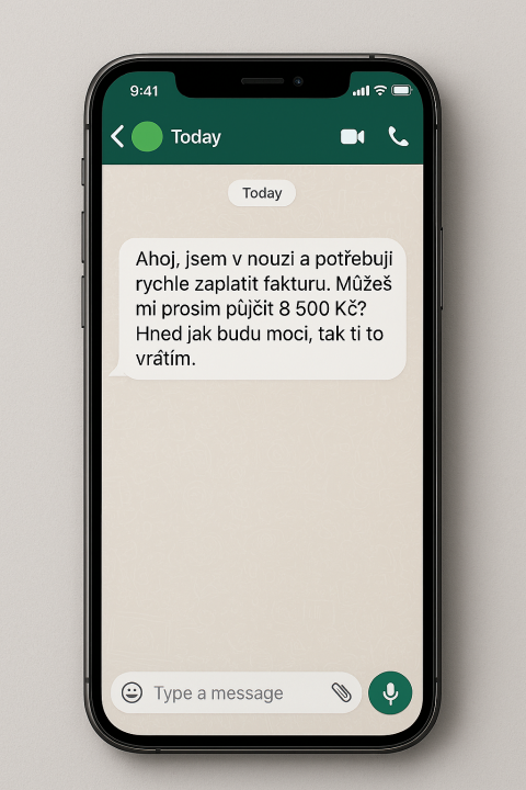 „Jsem v nouzi, potřebuji rychle zaplatit fakturu, pošleš mi peníze? Vrátím ti to hned, jak budu moci.“